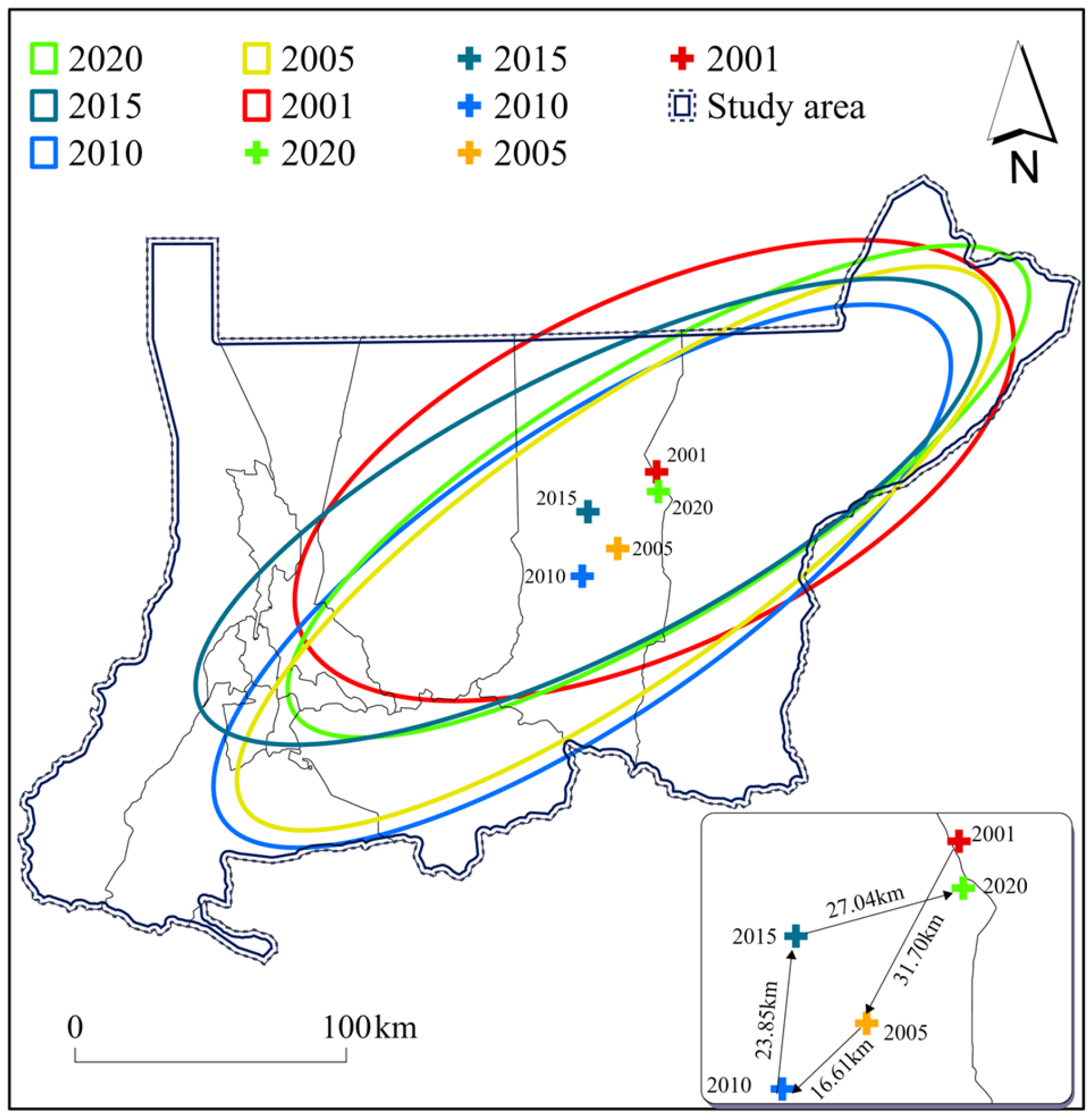 2.2.4. Standard Deviation Ellipse (SDE) and Bivariate Spatial Autocorrelation