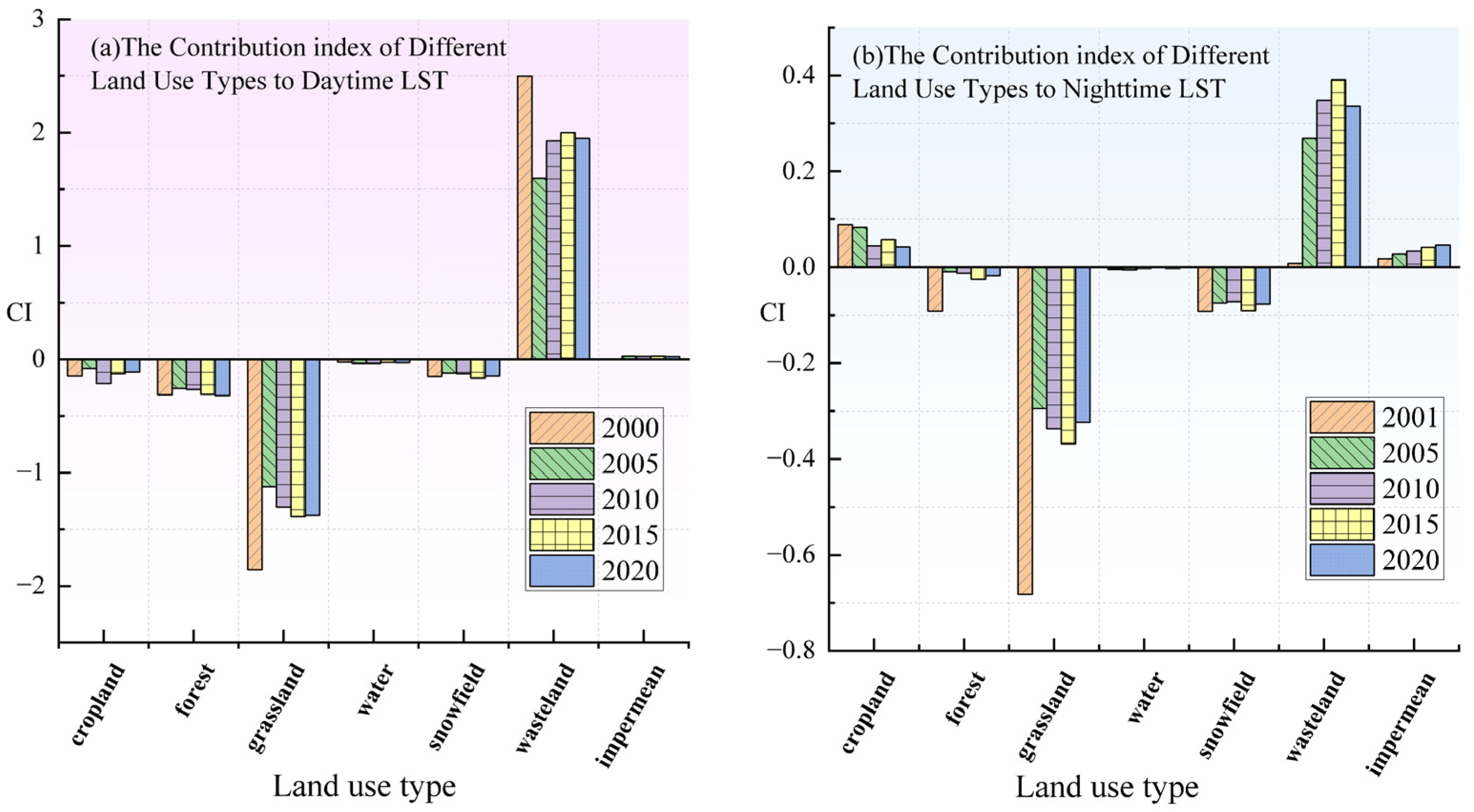 3.2.5. Contribution of Land Use Types to the Regional LST