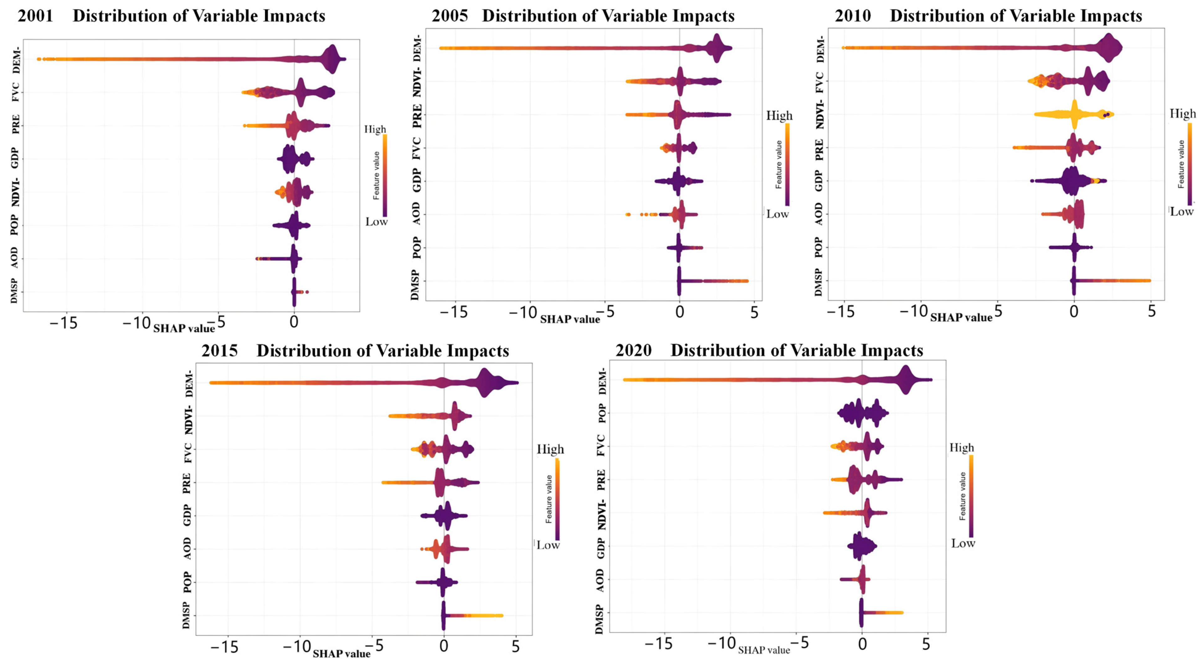 2.2.6. Analyzing Driving Factors of LST Using XGBoost and SHAP