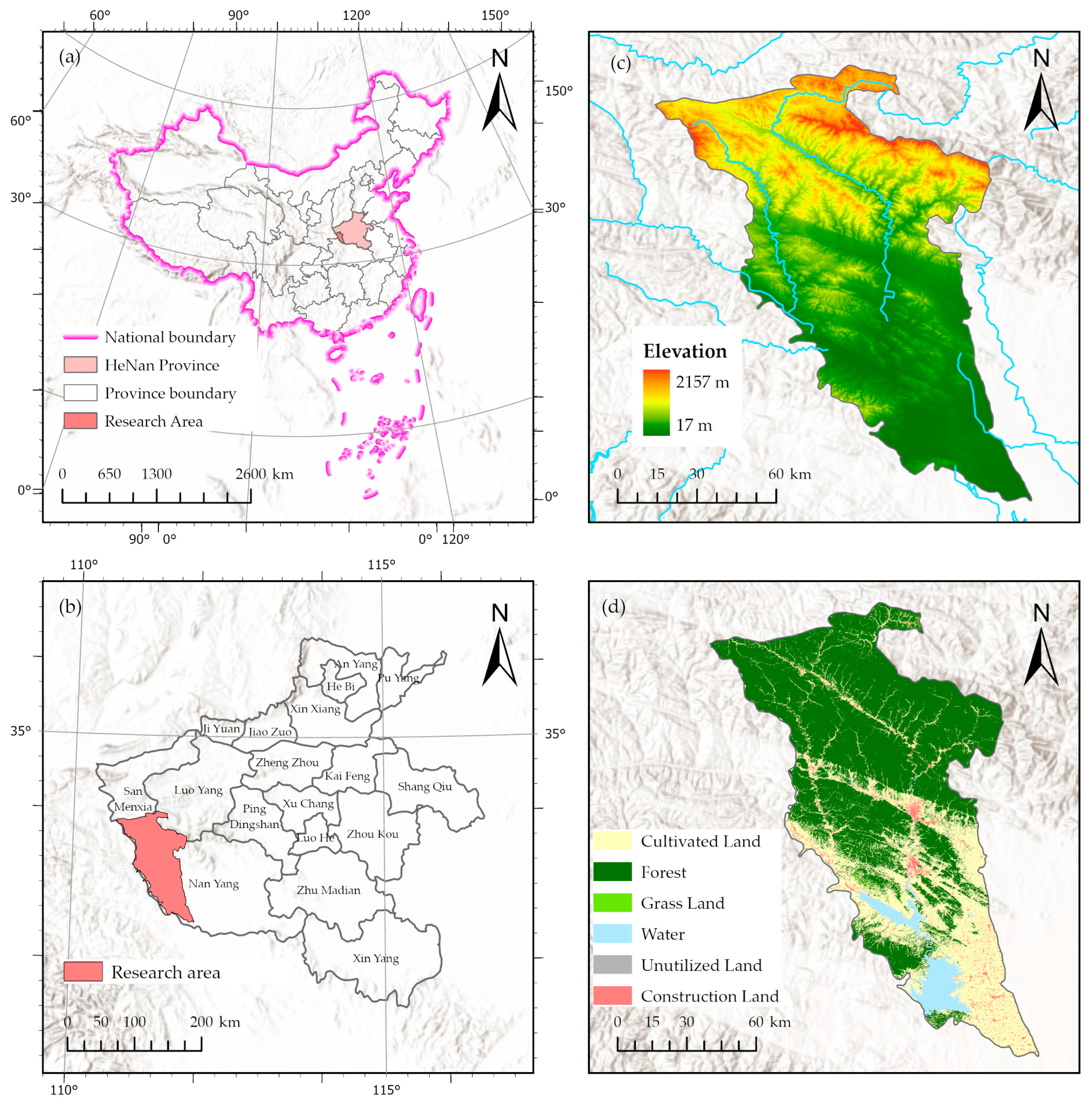- Liao, W.; Hu, Y.; Yu, X.; Liu, X. Spatiotemporal Variation and Influence Factors of Soil Conservation Function in Danjiangkou Reservoir Area During 2010–2020. Bull. Soil Water Conserv. 2021, 41, 288–294. [Google Scholar] [CrossRef]