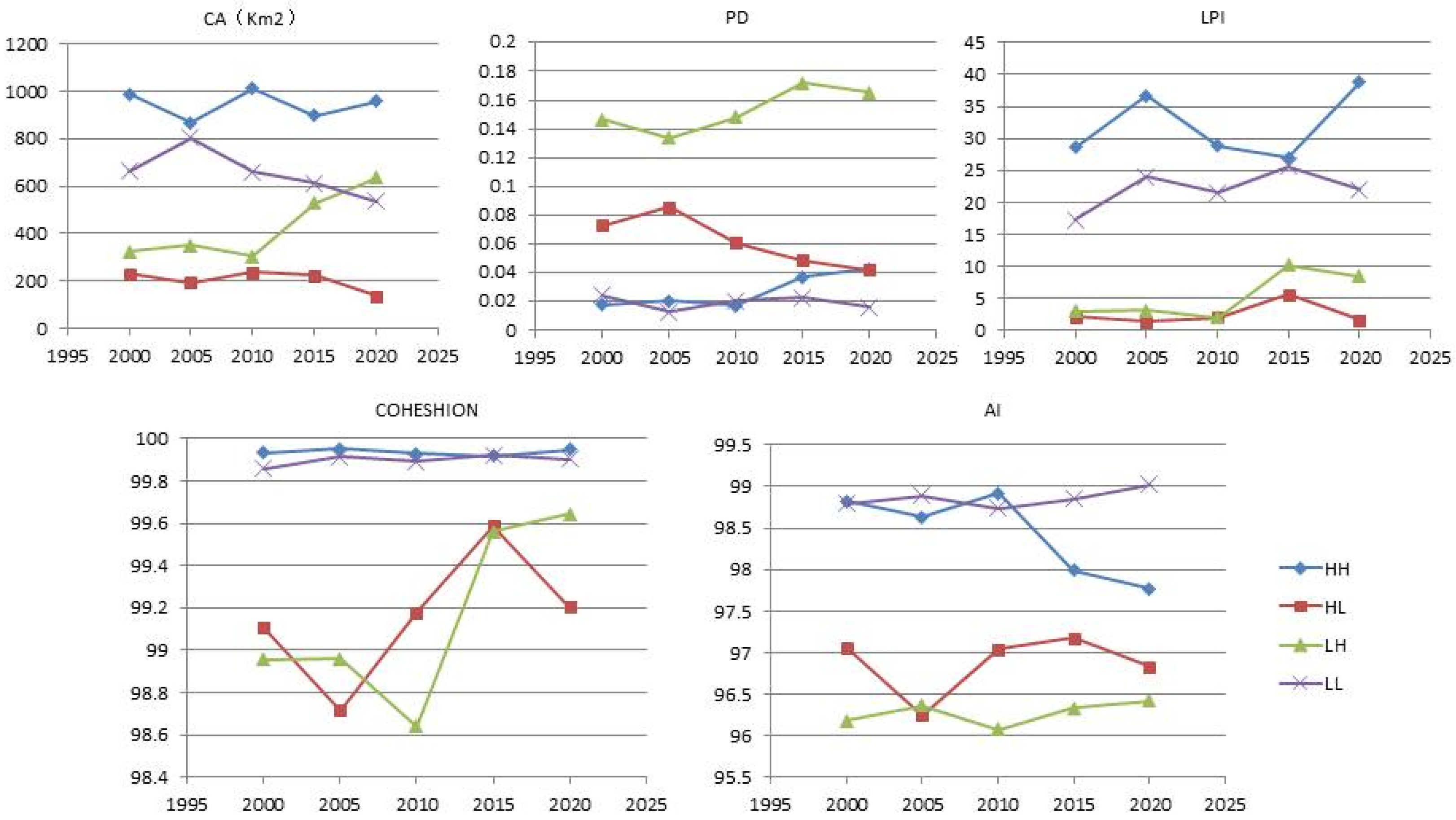 Figure 11. Changes in the landscape index of carbon emission pattern.