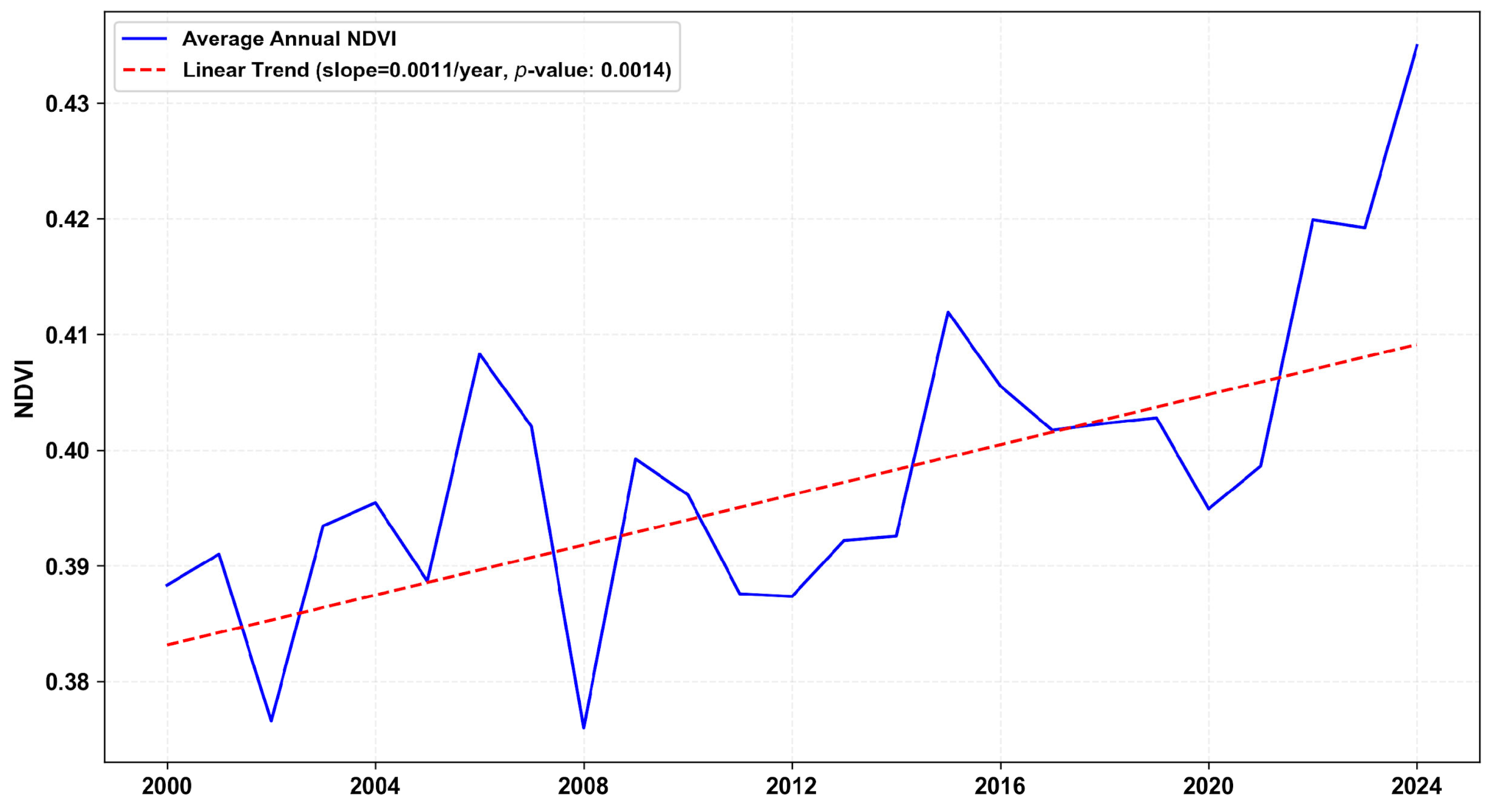 - Baniya, B.; Tang, Q.; Huang, Z.; Sun, S.; Techato, K. Spatial and Temporal Variation of NDVI in Response to Climate Change and the Implication for Carbon Dynamics in Nepal. Forests 2018, 9, 329. [Google Scholar] [CrossRef]