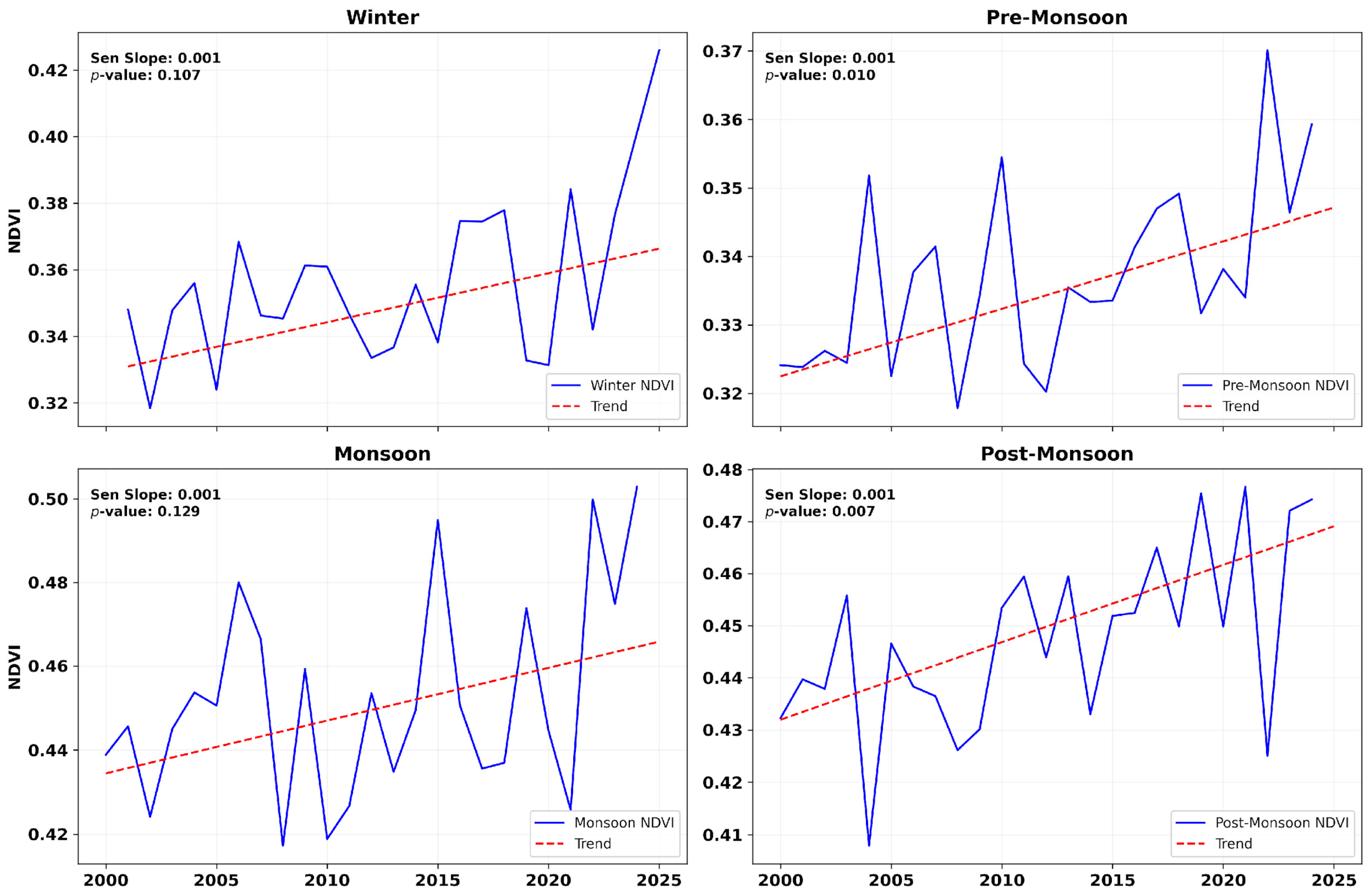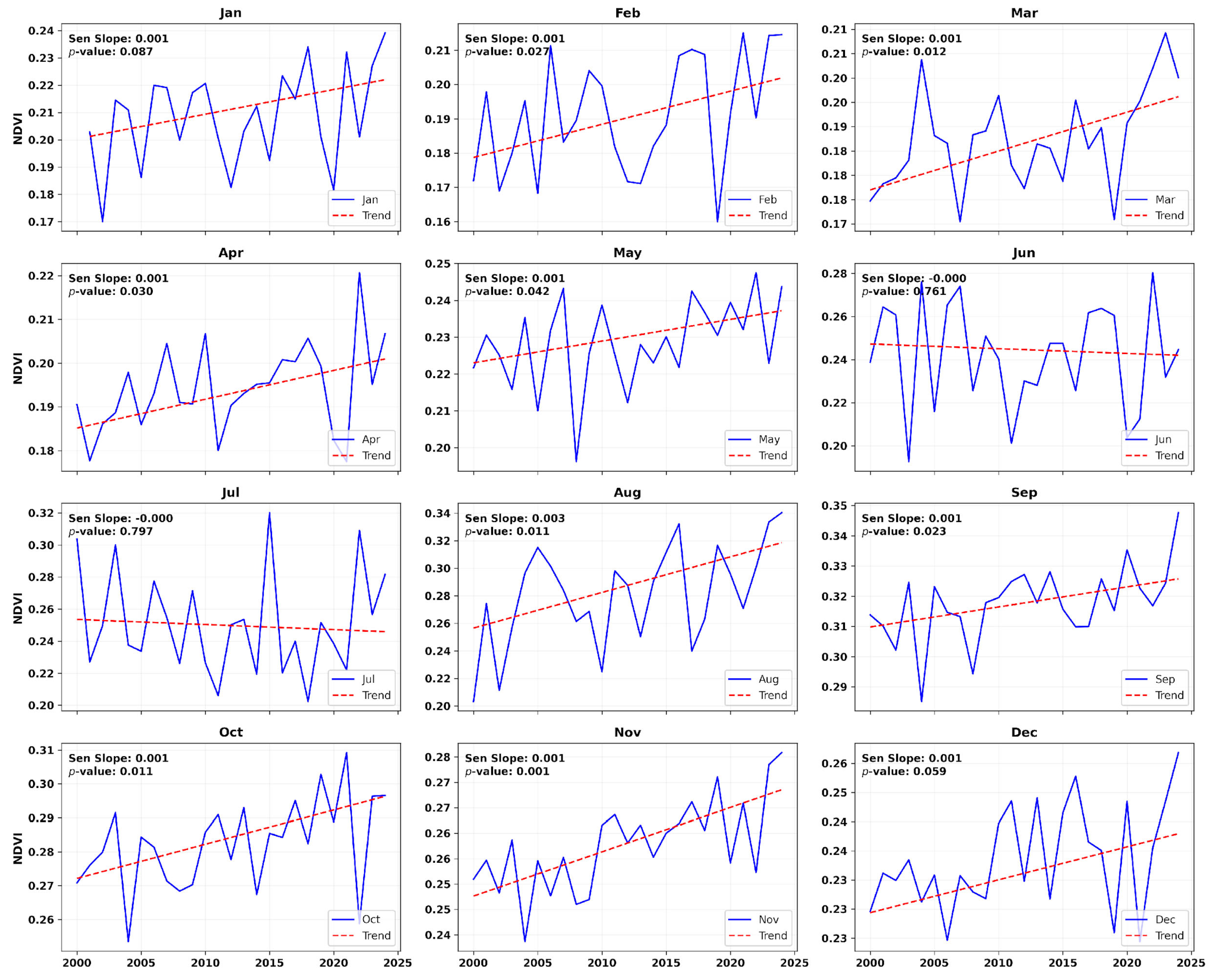 - Krakauer, N.Y.; Lakhankar, T.; Anadón, J.D. Mapping and Attributing Normalized Difference Vegetation Index Trends for Nepal. Remote. Sens. 2017, 9, 986. [Google Scholar] [CrossRef]
