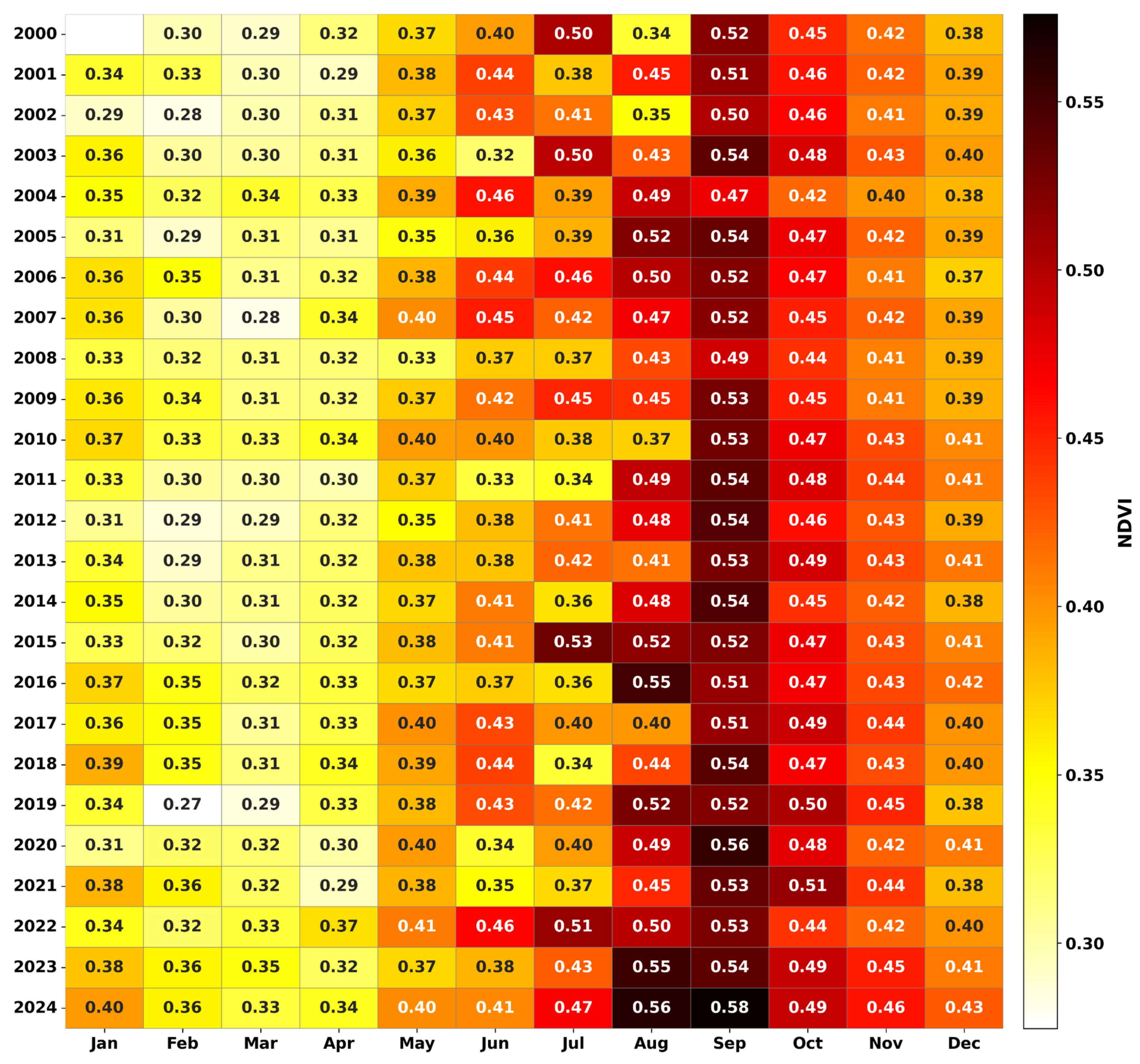 - Didan, K. MODIS/Terra Vegetation Indices 16-Day L3 Global 250m SIN Grid V061. NASA Land Processes Distributed Active Archive Center. Earth Science Data Systems, NASA. 2021. Available online: https://www.earthdata.nasa.gov/data/catalog/lpcloud-mod13q1-061 (accessed on 2 September 2025).
