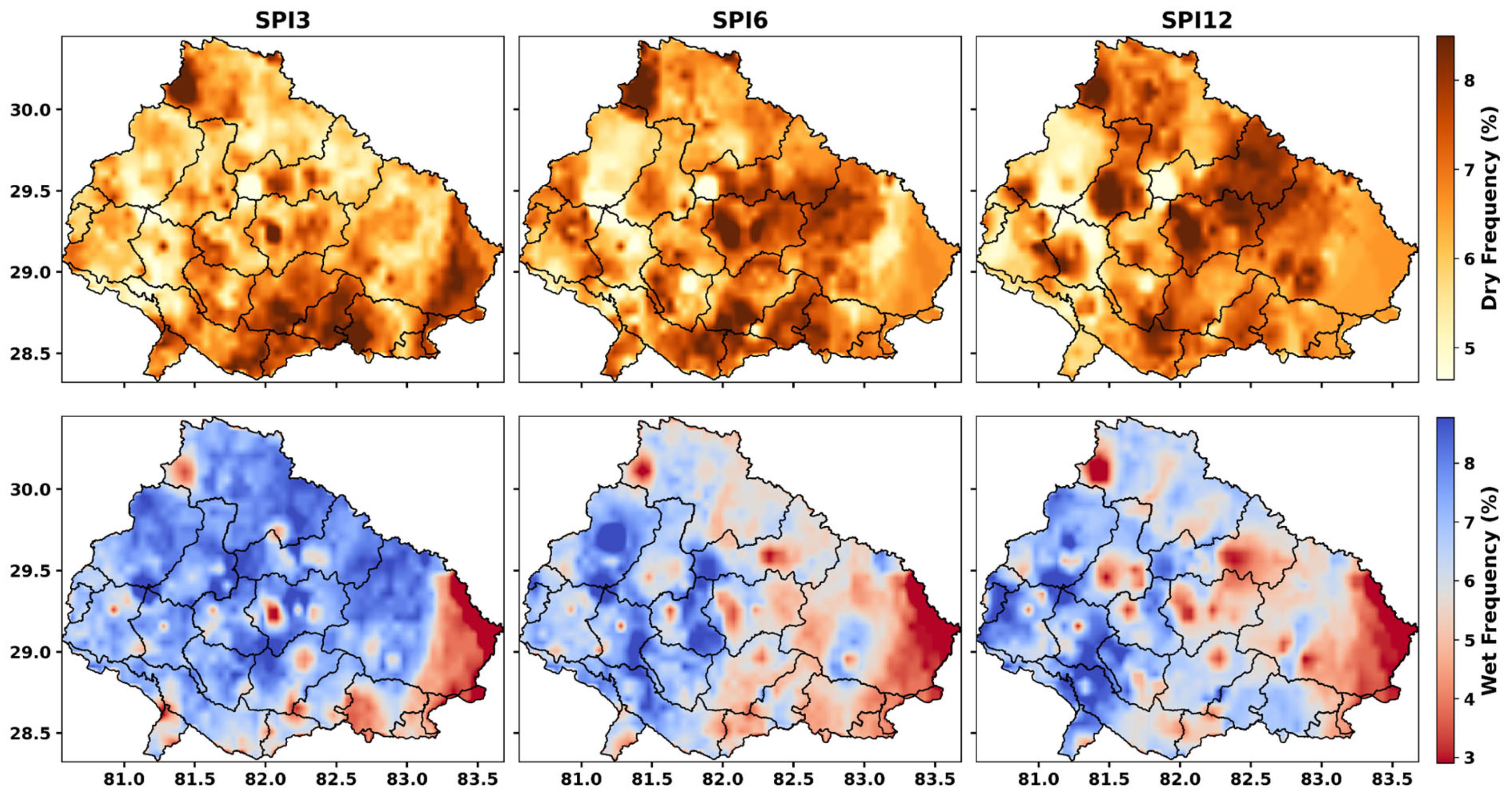 - Sharma, S.; Hamal, K.; Khadka, N. Drought characteristics over Nepal Himalaya and their relationship with climatic indices. Meteorol. Appl. 2021, 28, e1988. [Google Scholar] [CrossRef]
