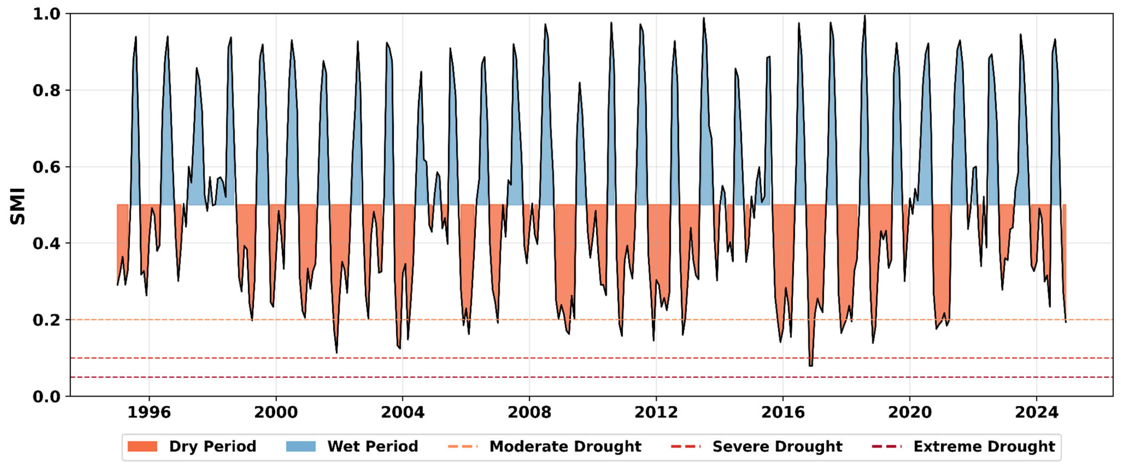 3.2.3. SMI Calculation (Hydrological Drought Index)