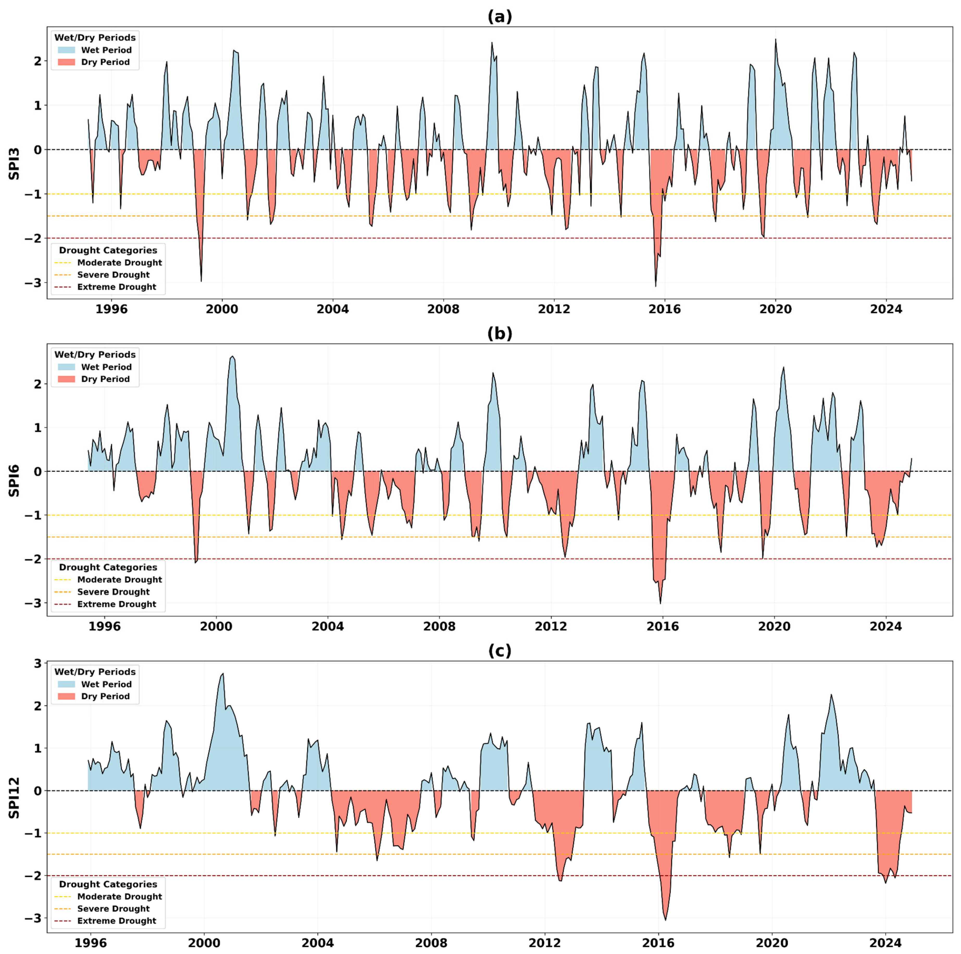 3.2.2. SPI Calculation (Meteorological Drought Index)