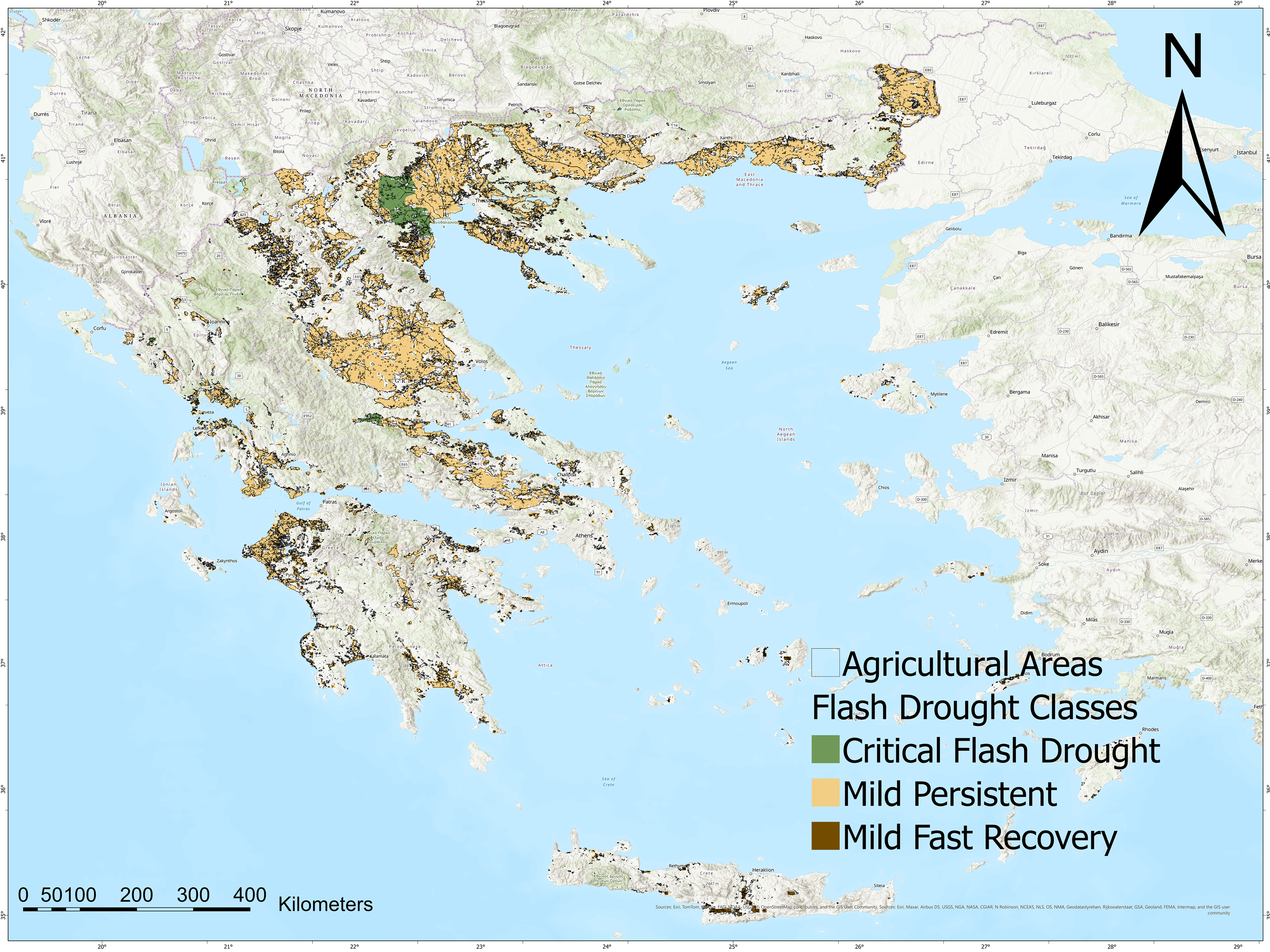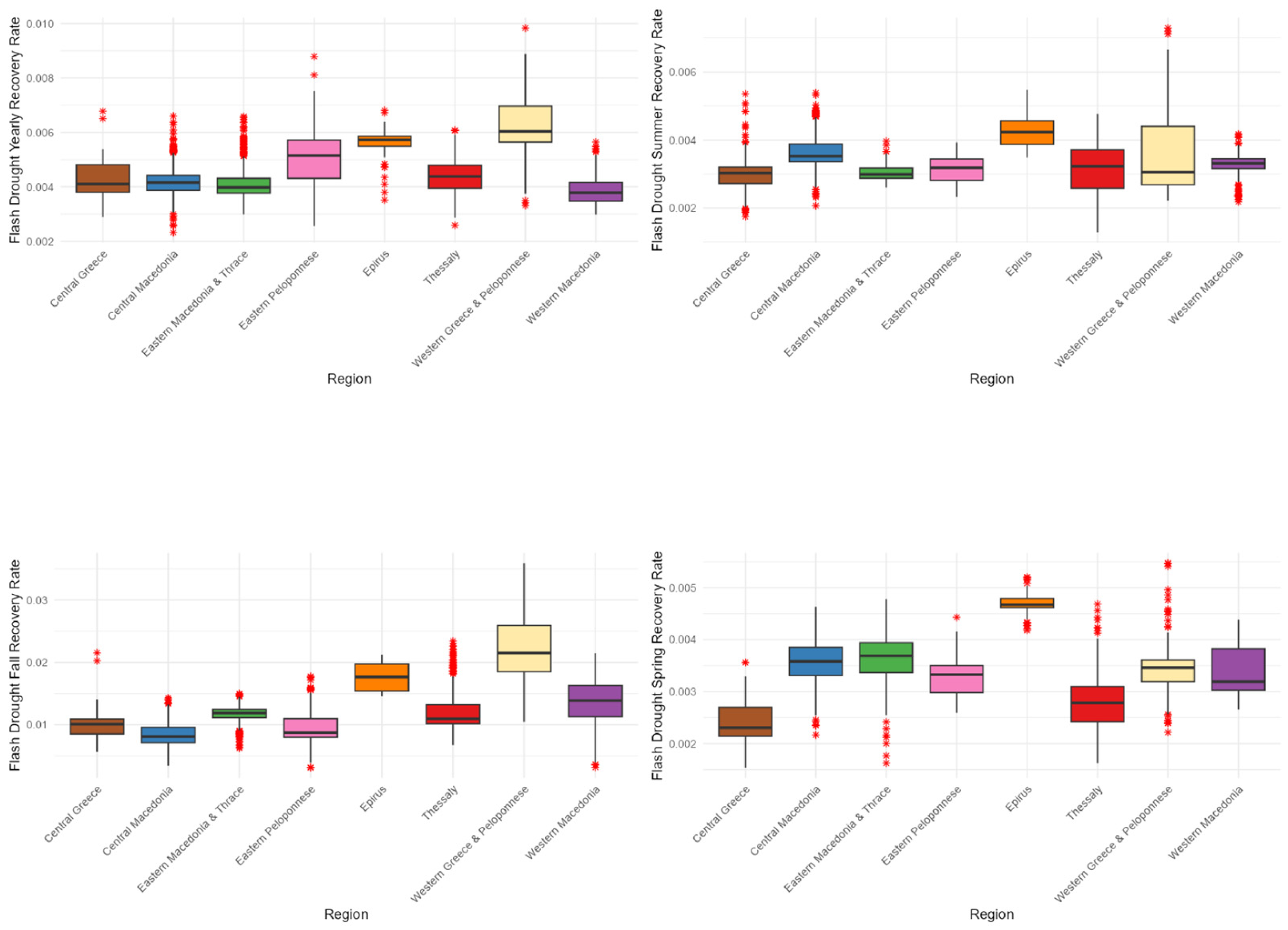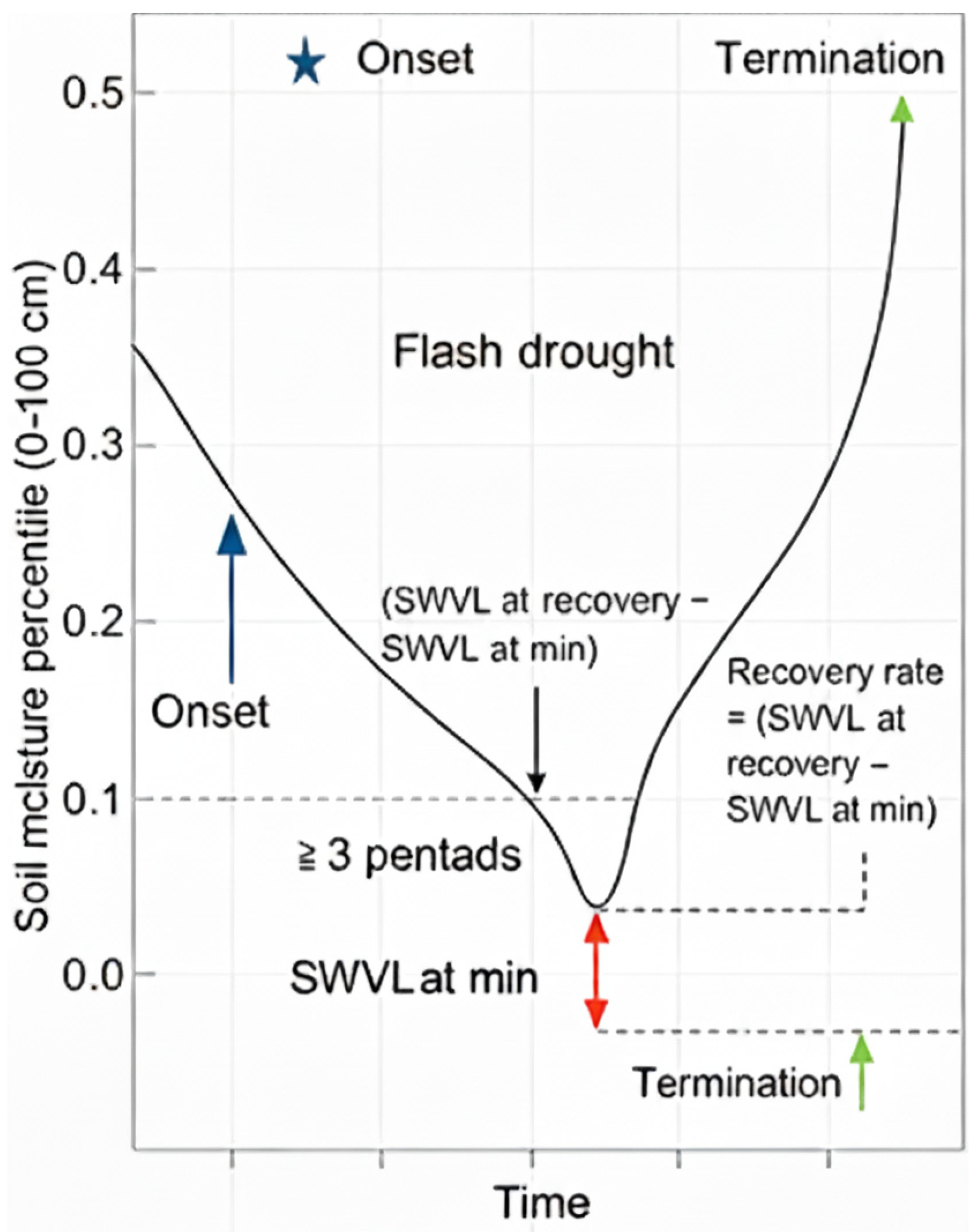 - Critical Flash Drought (green): Denoting severe decline rates with long recovery periods