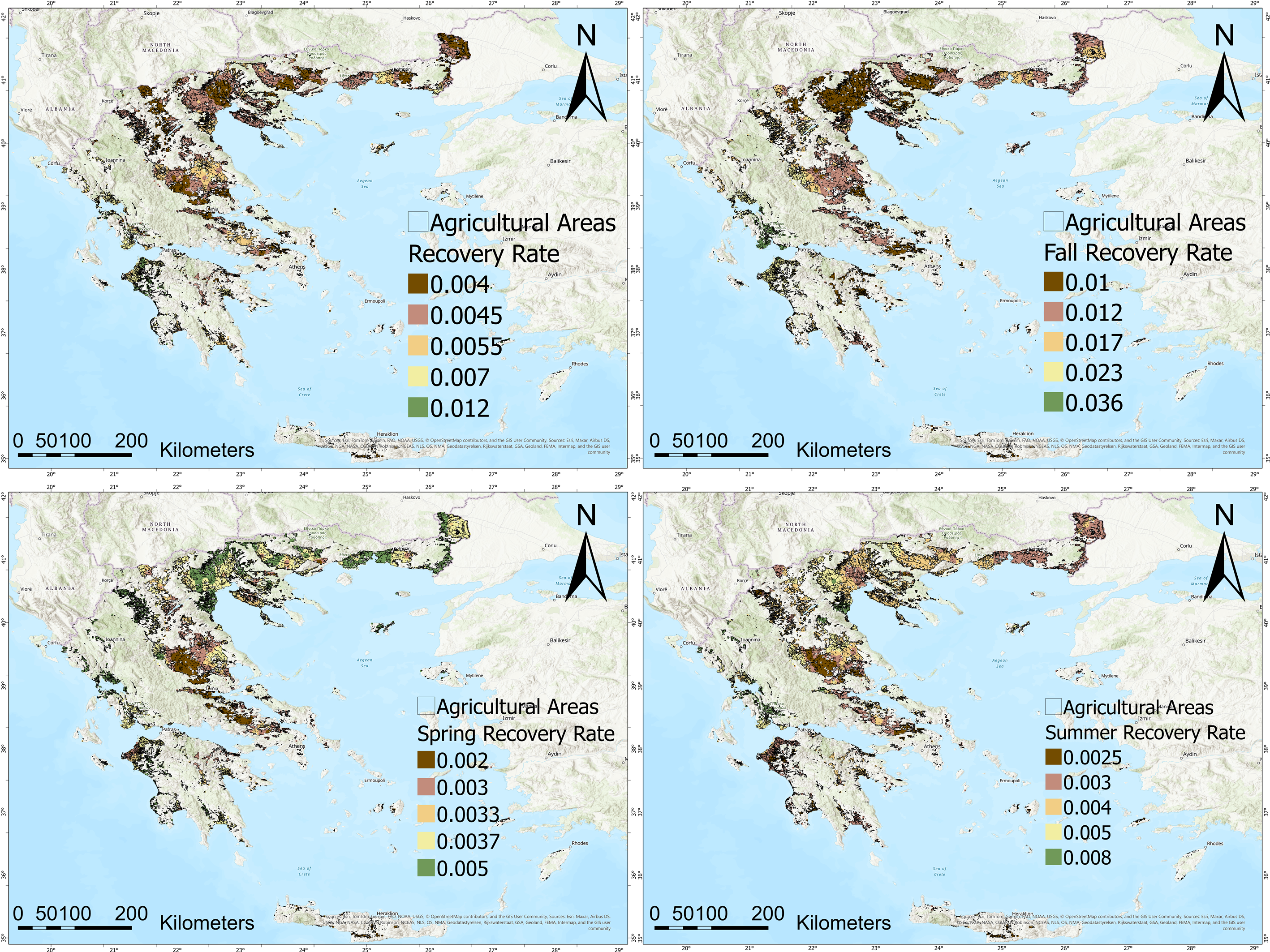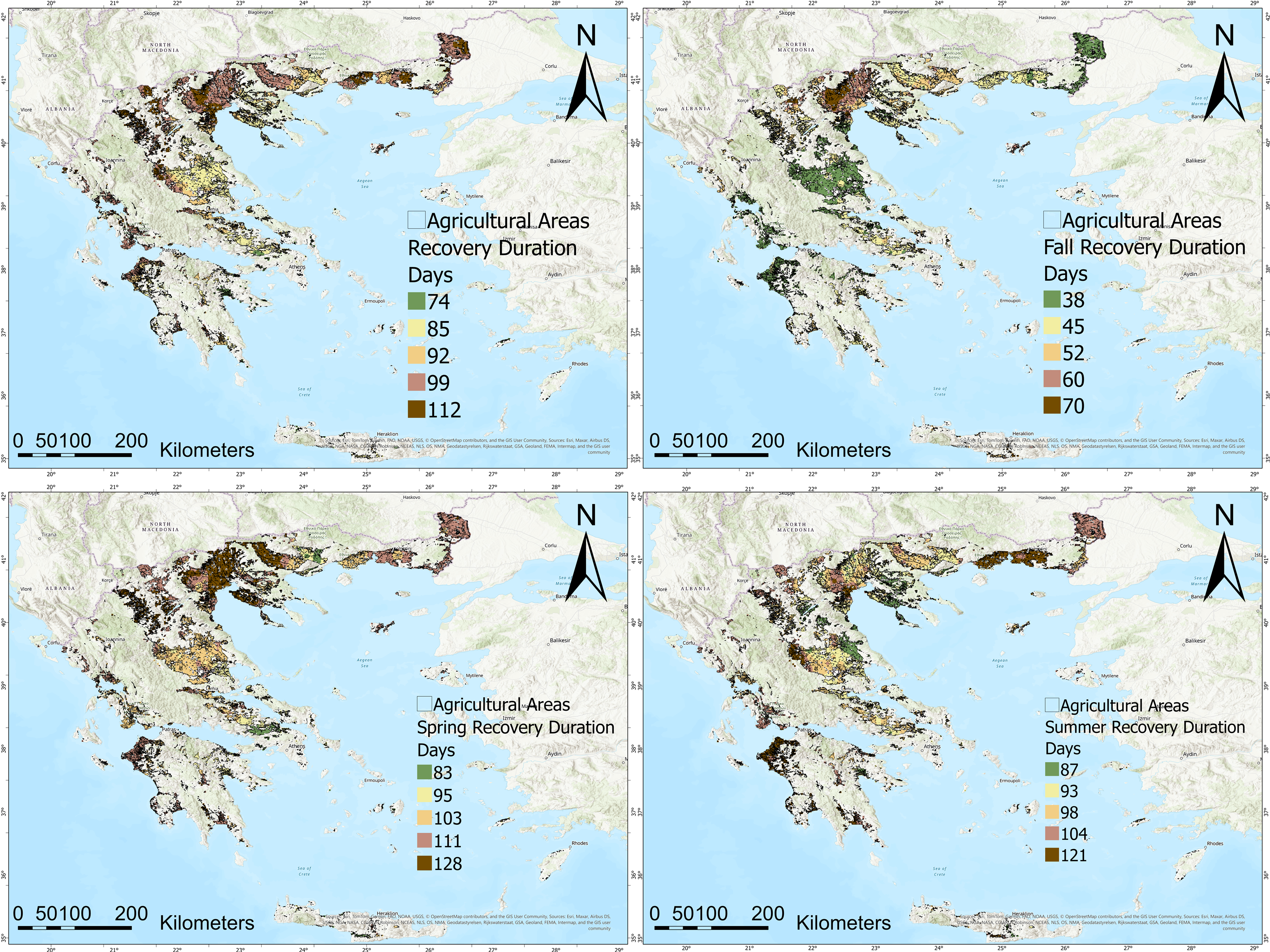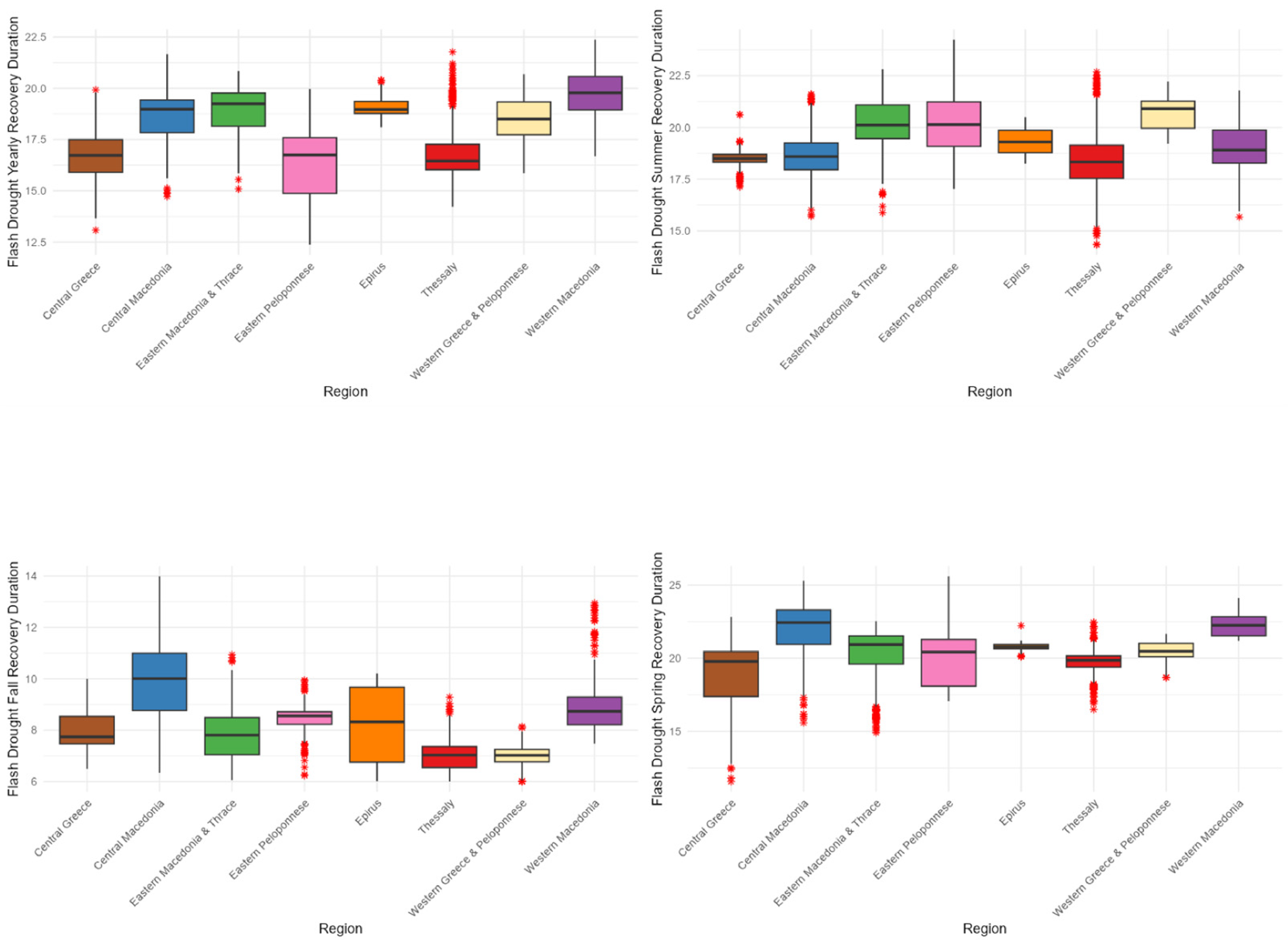 3.8. Recovery Duration on Regional Levels