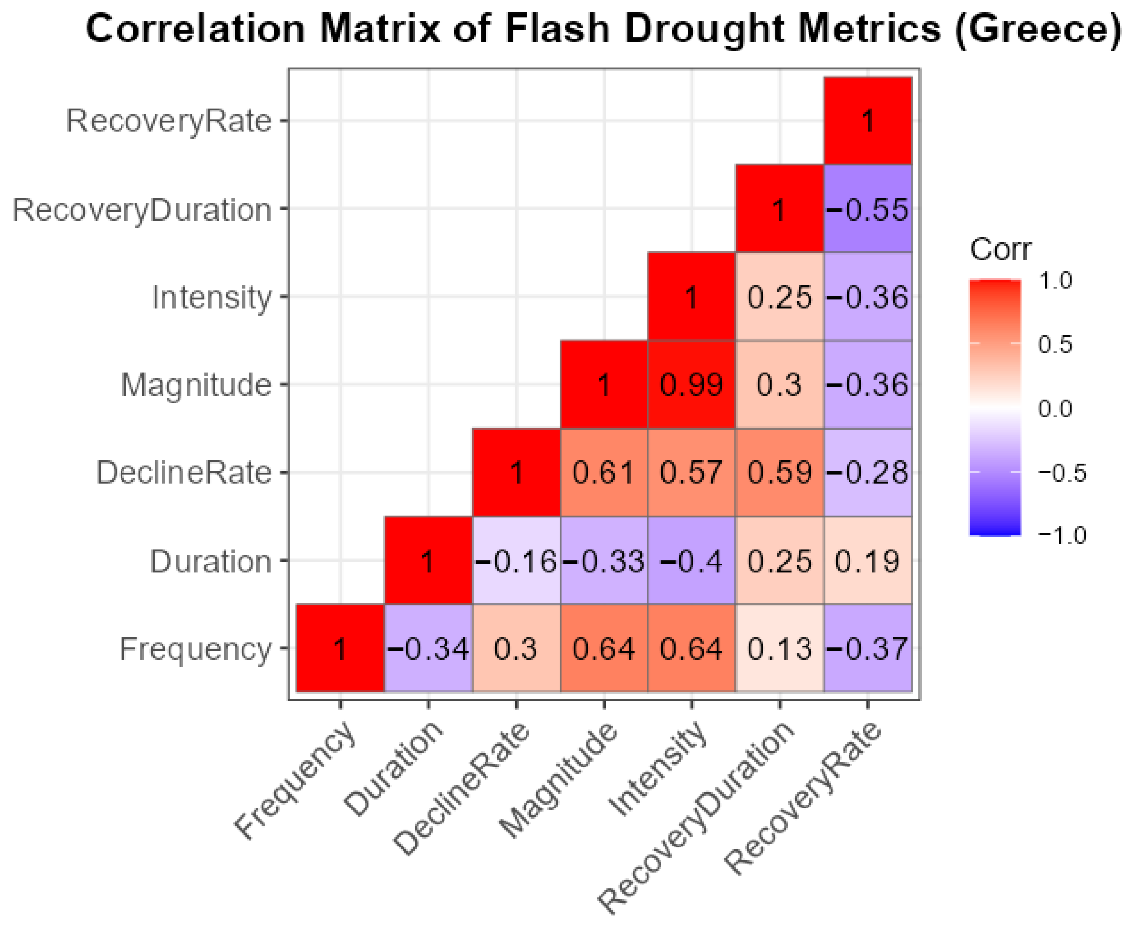 - Frequency (F): The occurrence rate of flash droughts per grid cell, calculated as the total number of events detected during the study period (1990–2024).