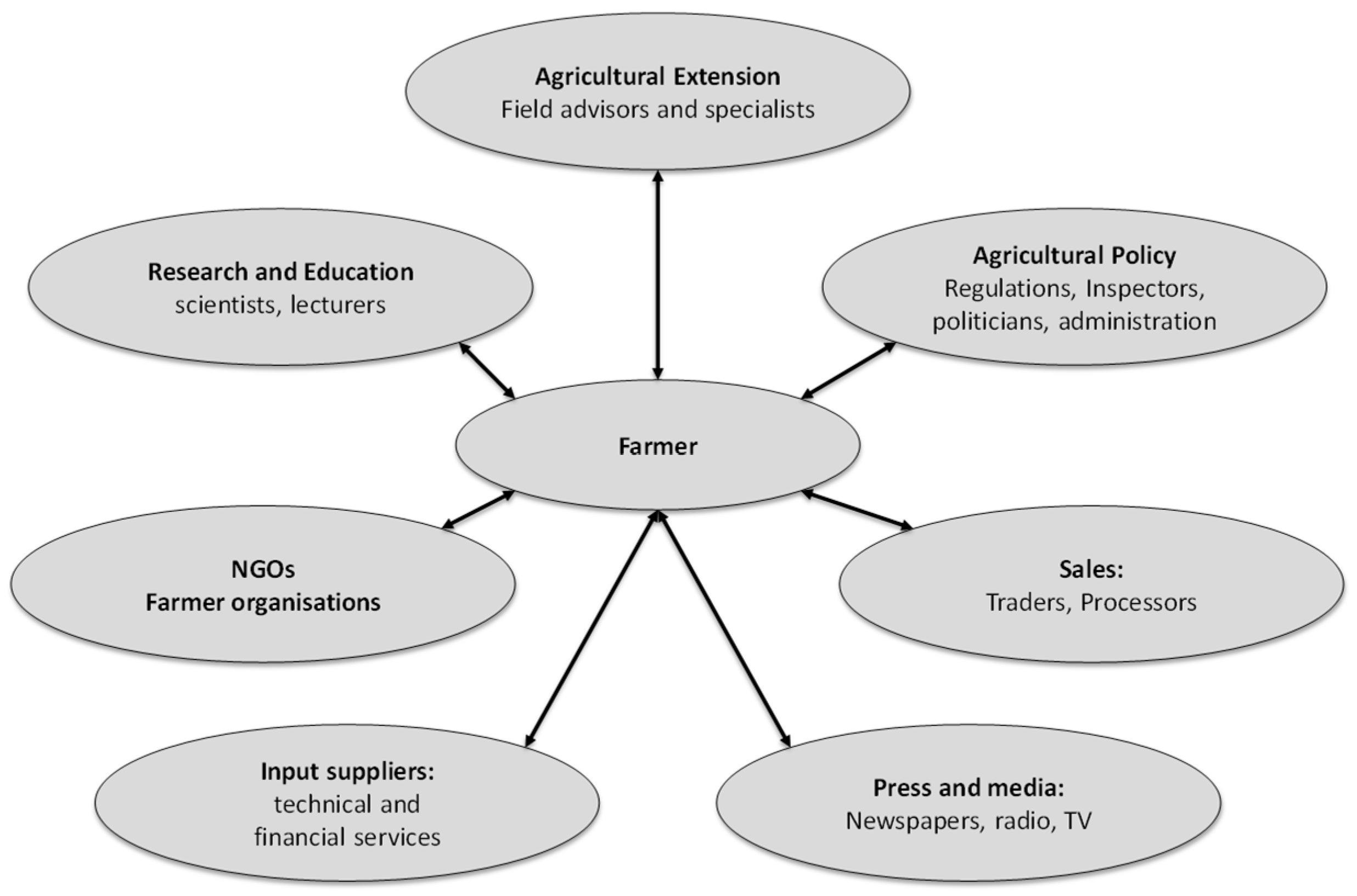 - Klerkx, L.; van Mierlo, B.; Leeuwis, C. Evolution of systems approaches to agricultural innovation: Concepts, analysis and interventions. In Farming Systems Research into the 21st Century: The New Dynamic; Darnhofer, I., Gibbon, D., Dedieu, B., Eds.; Springer: Dordrecht, The Netherlands, 2012; pp. 457–483. ISBN 978-94-007-4503-2. [Google Scholar]