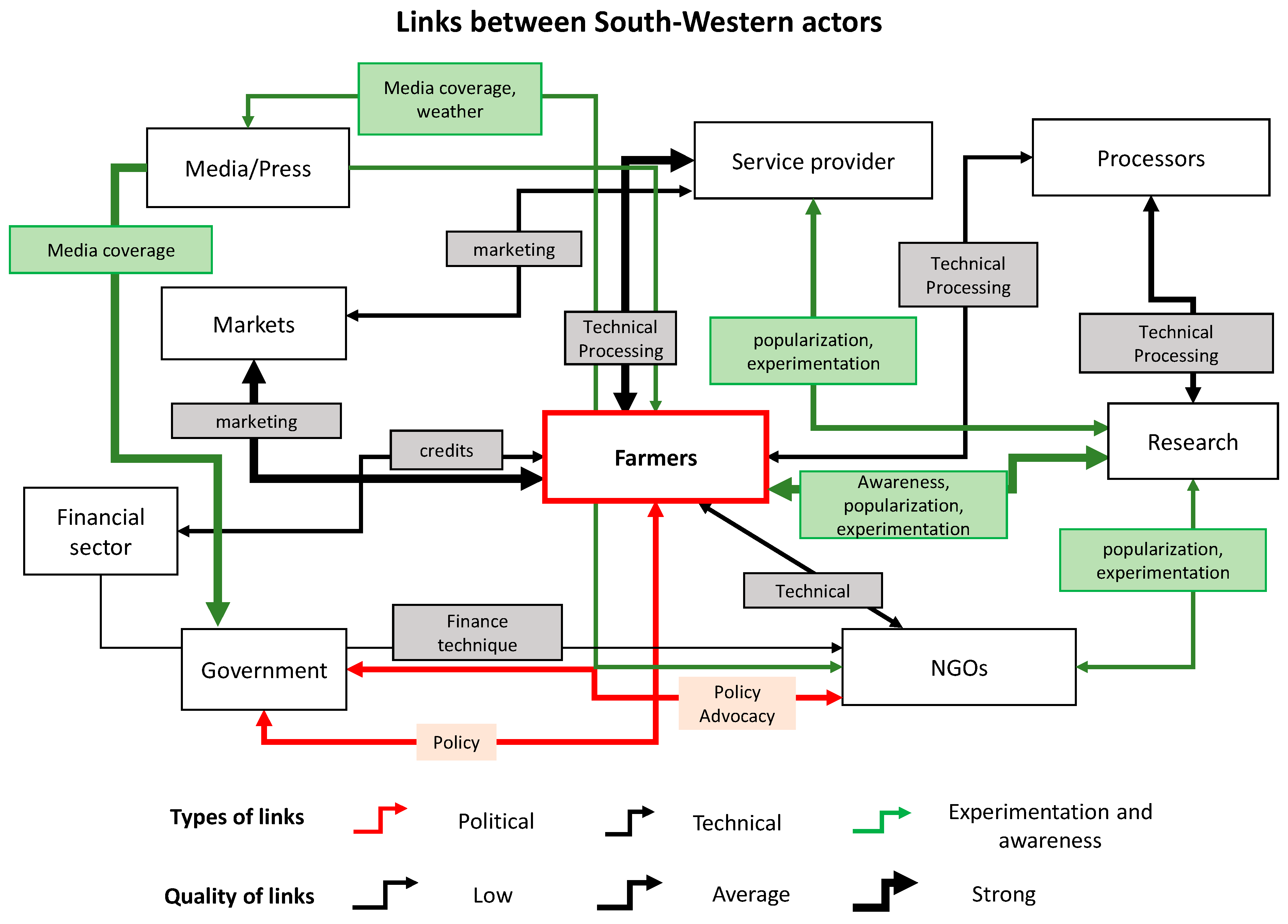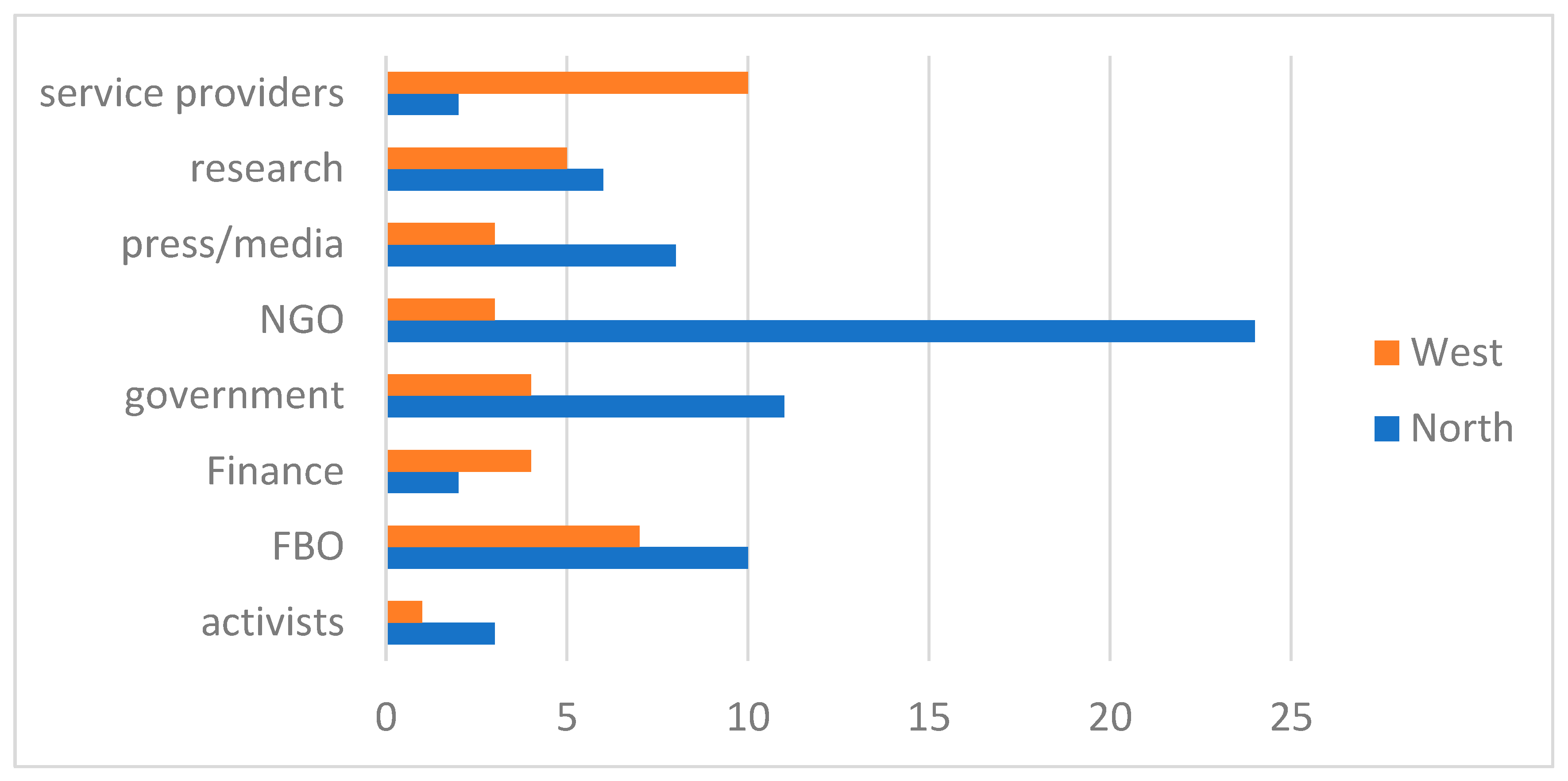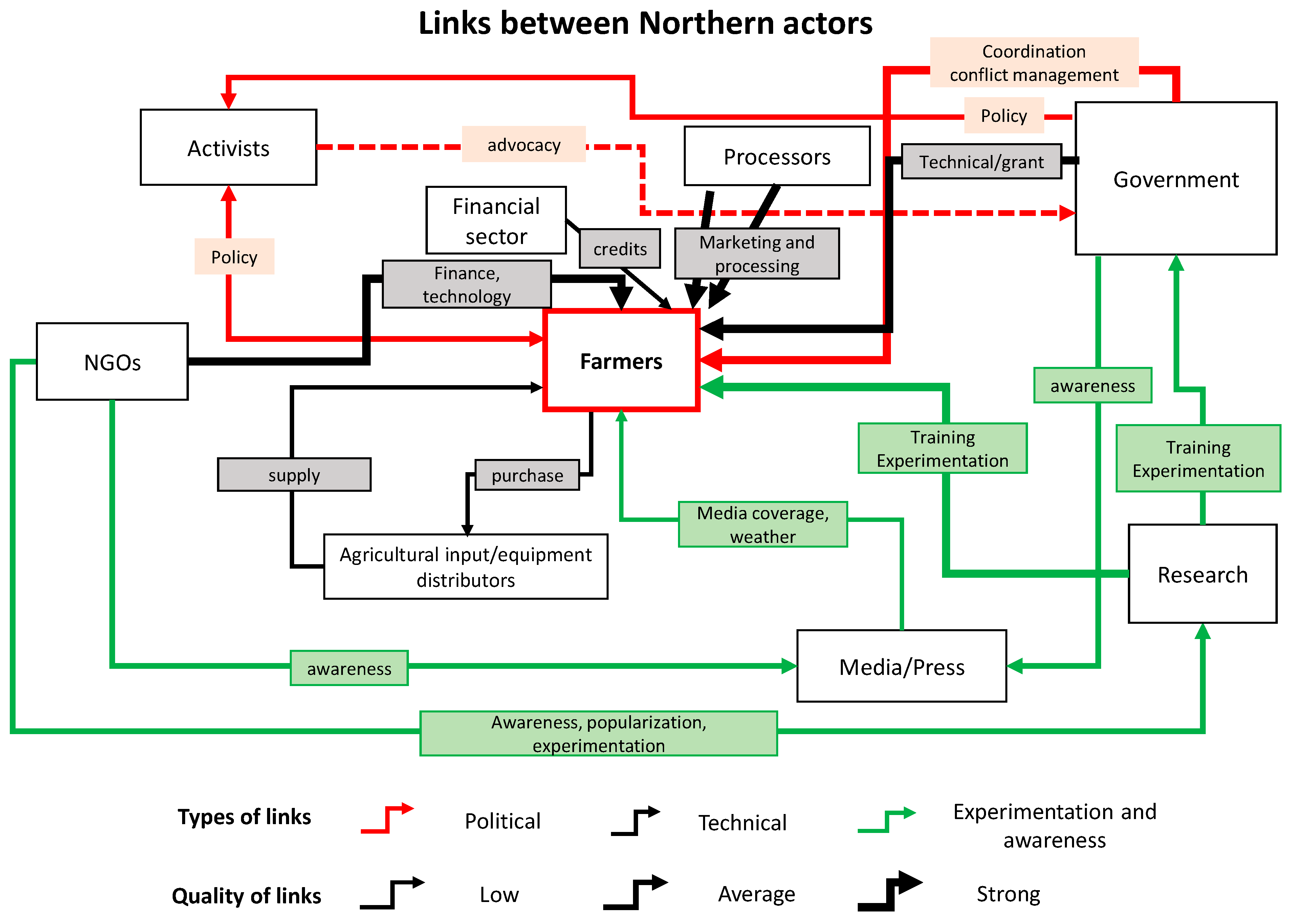 3.1. Actors Involved in the Promotion of Agroecology in the North and South-West of Burkina Faso