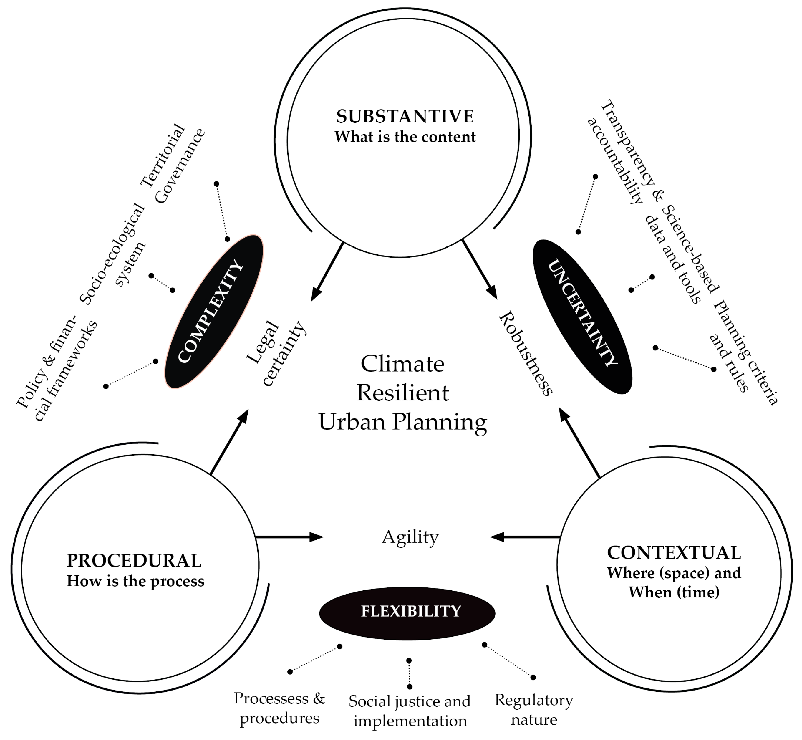 | Procedural planning | Allowing Flexibility | Adaptability of structures, processes, and procedures. | Social justice and effective implementation mechanisms. | Regulatory flexibility without compromising legal integrity. |