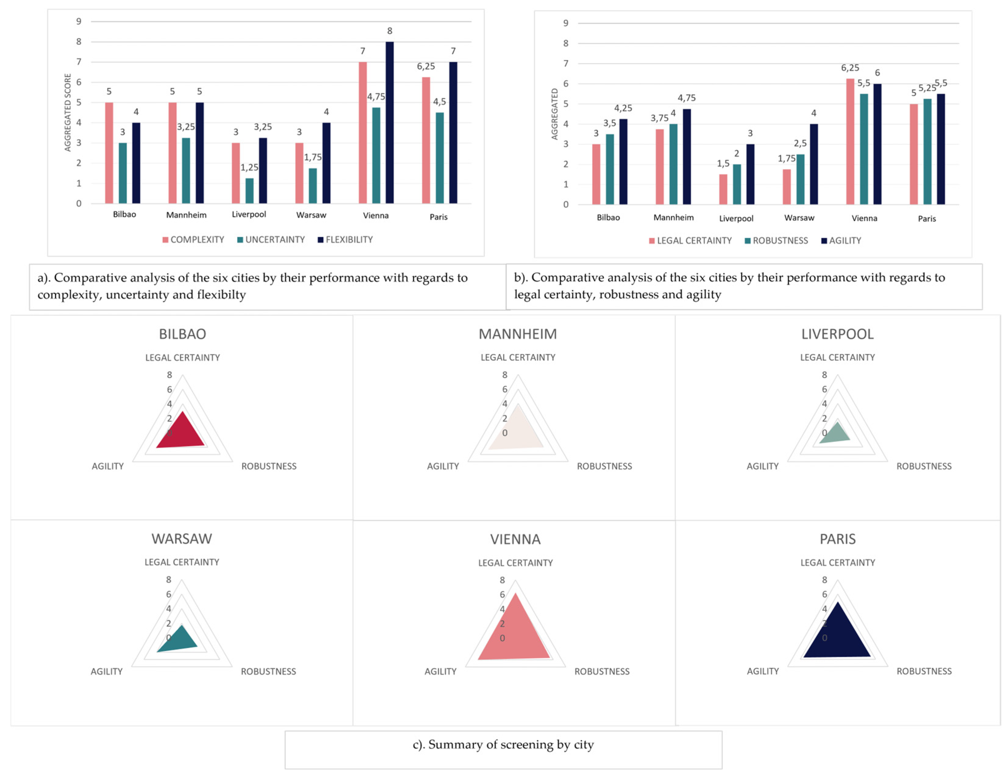 | Design, elaboration and approval processes, and procedures Supports agility | F1_E. Streamlined, simplified, and accelerated planning processes that integrate climate considerations and approval procedures. | 1p—Procedures for spatial and urban plan approval are streamlined, and structures/processes are easily adaptable to unexpected emerging changes. 0.5p—Procedures are somewhat streamlined and adaptable, but not consistently or fully. 0.25p—Some recognition of adaptability, but implementation is limited or unclear. 0p—Procedures are not streamlined, and adaptability to changes is absent. | [7,90,95,96] |