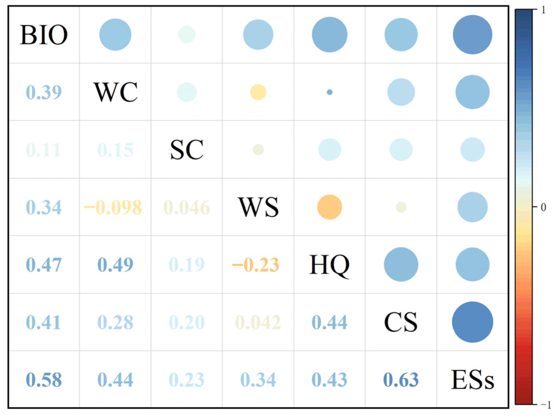- Yang, J.Y.; Guan, X.; LI, J.S.; Liu, J.J.; Hao, H.J.; Wang, H.R. Spatial patterns and interrelationships between biodiversity and ecosystem services in the Wujiang River Basin. Biodivers. Sci. 2023, 31, 132–141. [Google Scholar] [CrossRef]