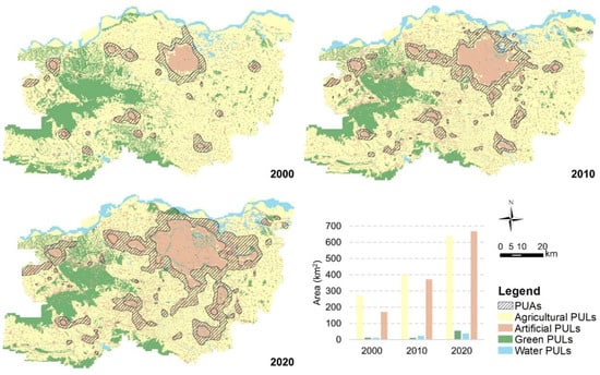 Spatial Extent of PULs and Corresponding Remote Sensing Imagery in 2000, 2010, and 2020.