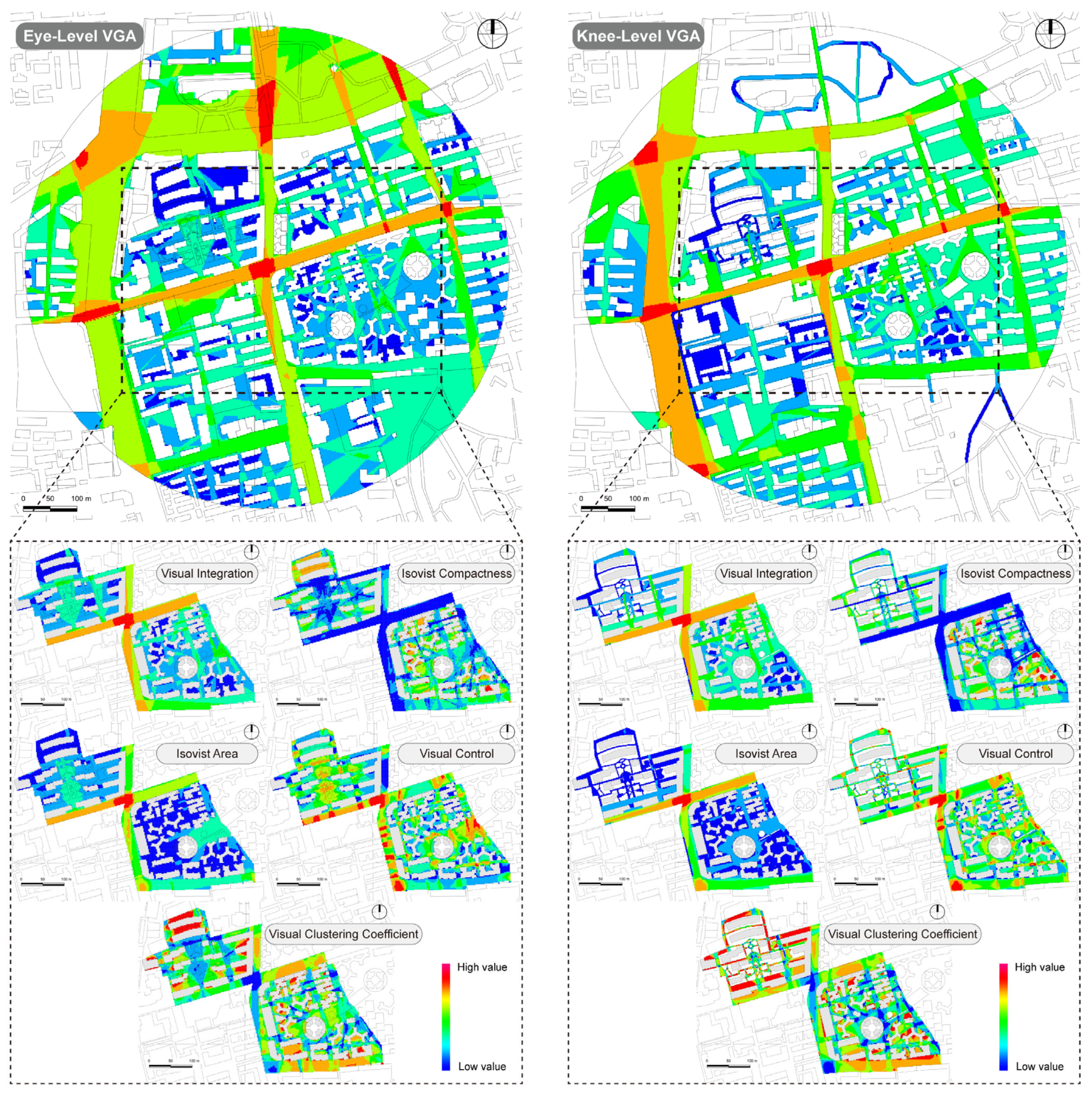 | Isovist compactness [knee] | 0.783 | 1.433 | 0.476 | −0.650 | 0.957 | 0.307 | ||||||