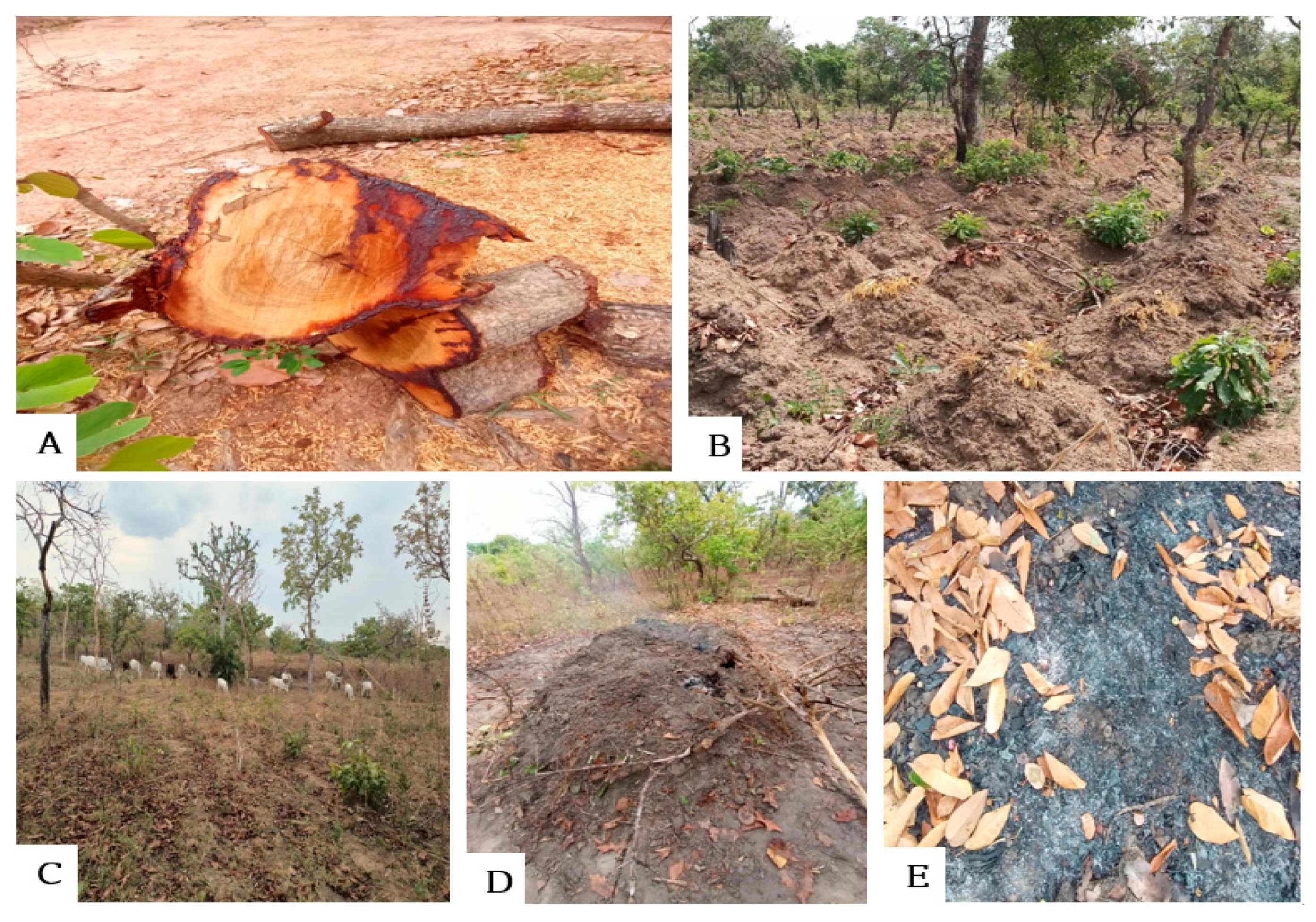 3.1. Anthropogenic Disturbances Disrupting the Ouémé Supérieur Classified Forest