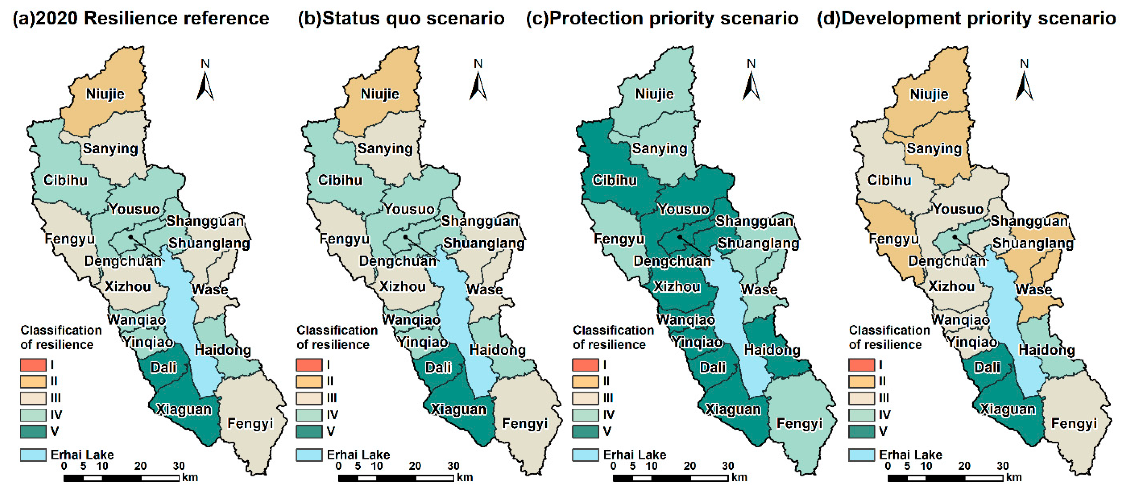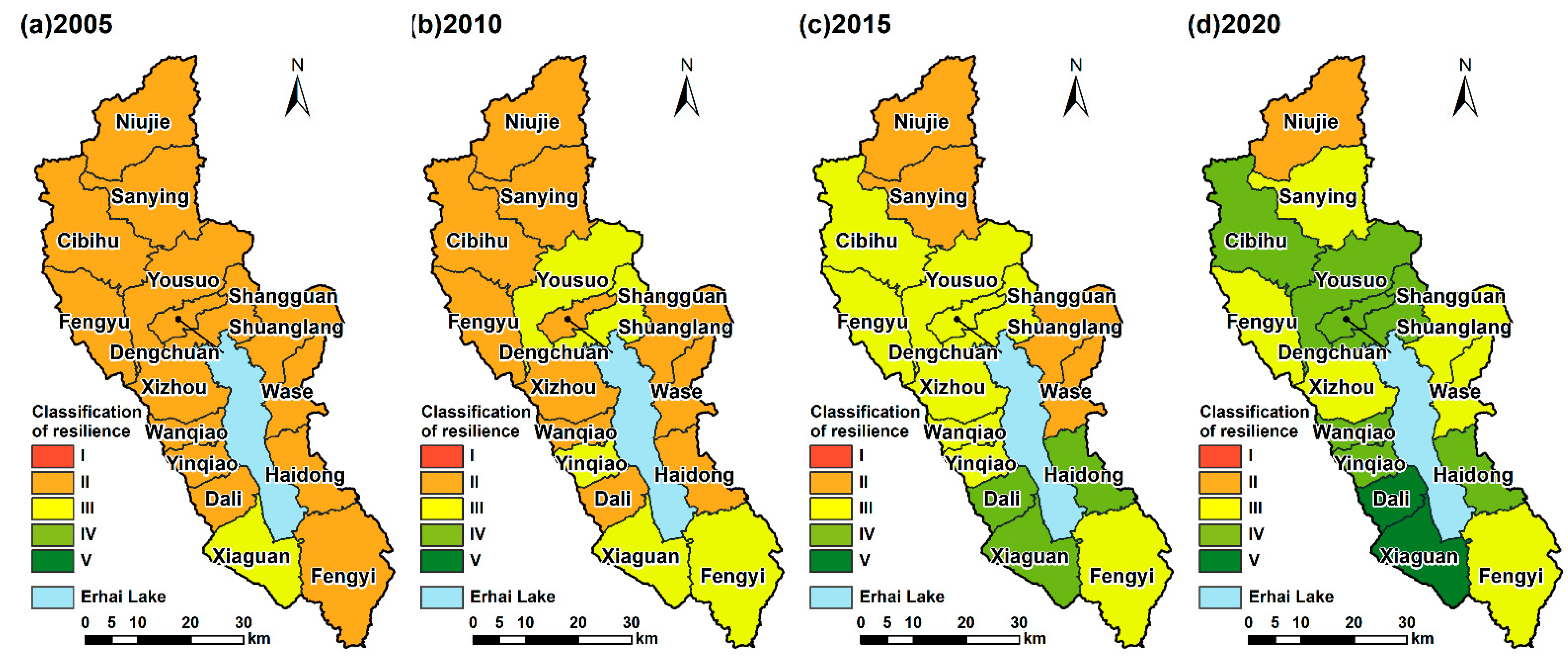 APA StyleLiu, B., Wang, J., Liu, M., & Jiang, Y. (2025). Resilience Assessment and Governance Strategies for a Complex Watershed System: A Case Study of the Erhai Basin, China. Land, 14(12), 2354. https://doi.org/10.3390/land14122354