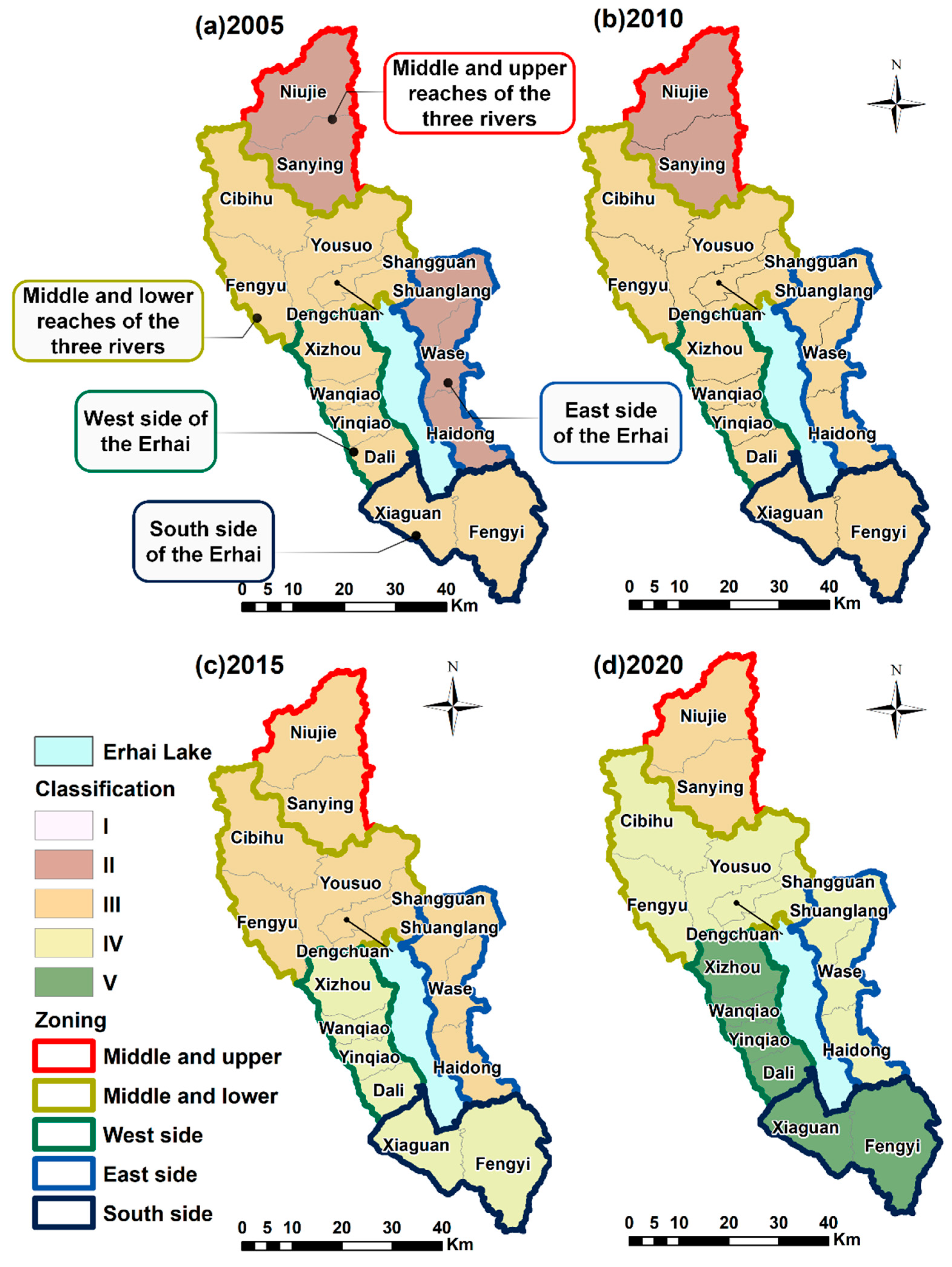 - Yang, S.-Y.; Tang, T.; Cai, Q.-H.; Xiao, W.; Wang, X.; Li, F.-Q.; Tang, J. Aquatic eco-regionalization of Erhai Lake Basin, Yunnan Province of Southwest China. Chin. J. Ecol. 2012, 31, 1798. [Google Scholar]