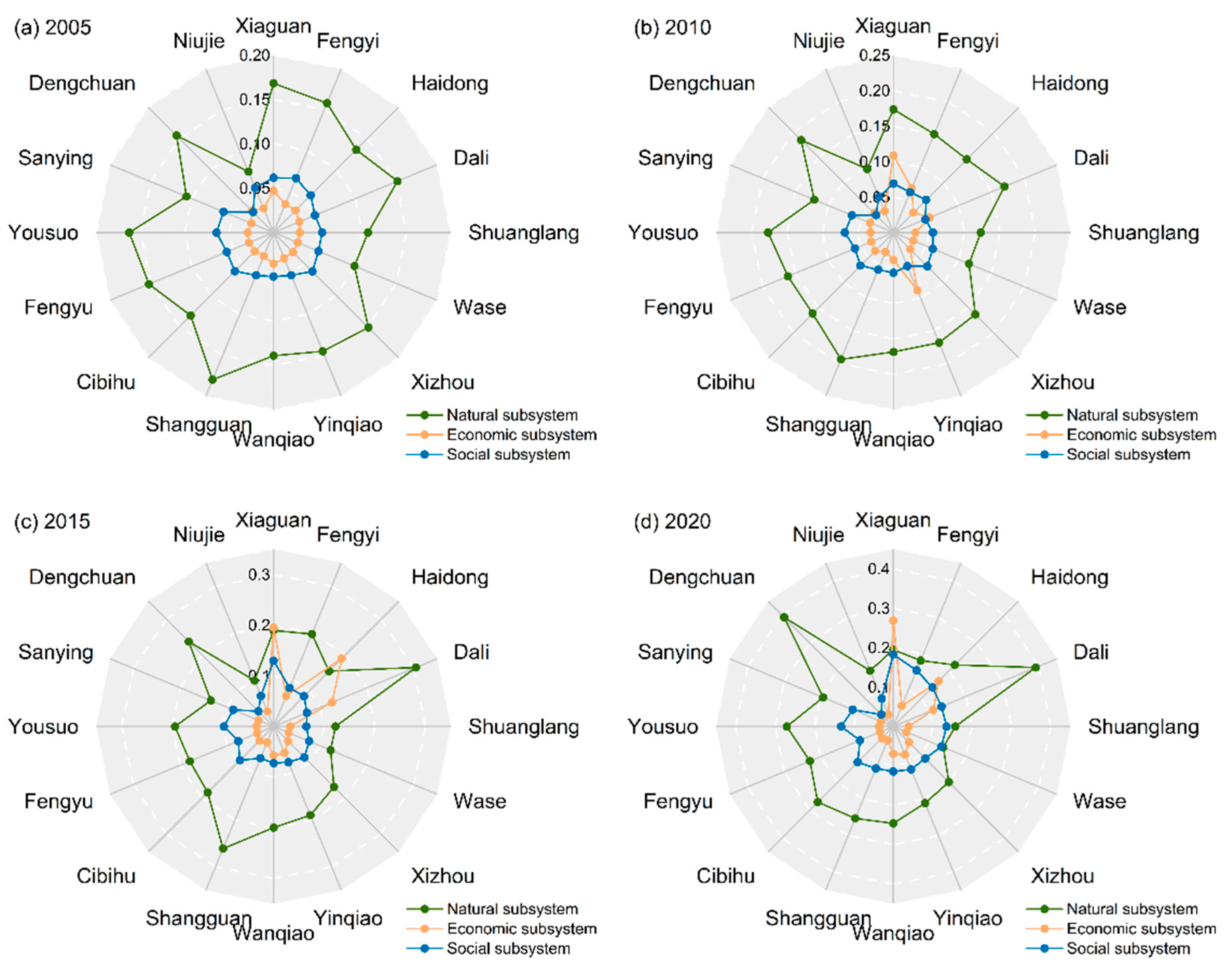 - Zhou, H.T.; Wu, X.D.; Nie, H.X.; Wang, X.C.Y.; Zang, S.Y. Coupling coordination analysis and obstacle factors identification of rural living-production-ecological functions in a farming-pastoral ecotone. Ecol. Indic. 2024, 158, 111398. [Google Scholar] [CrossRef]