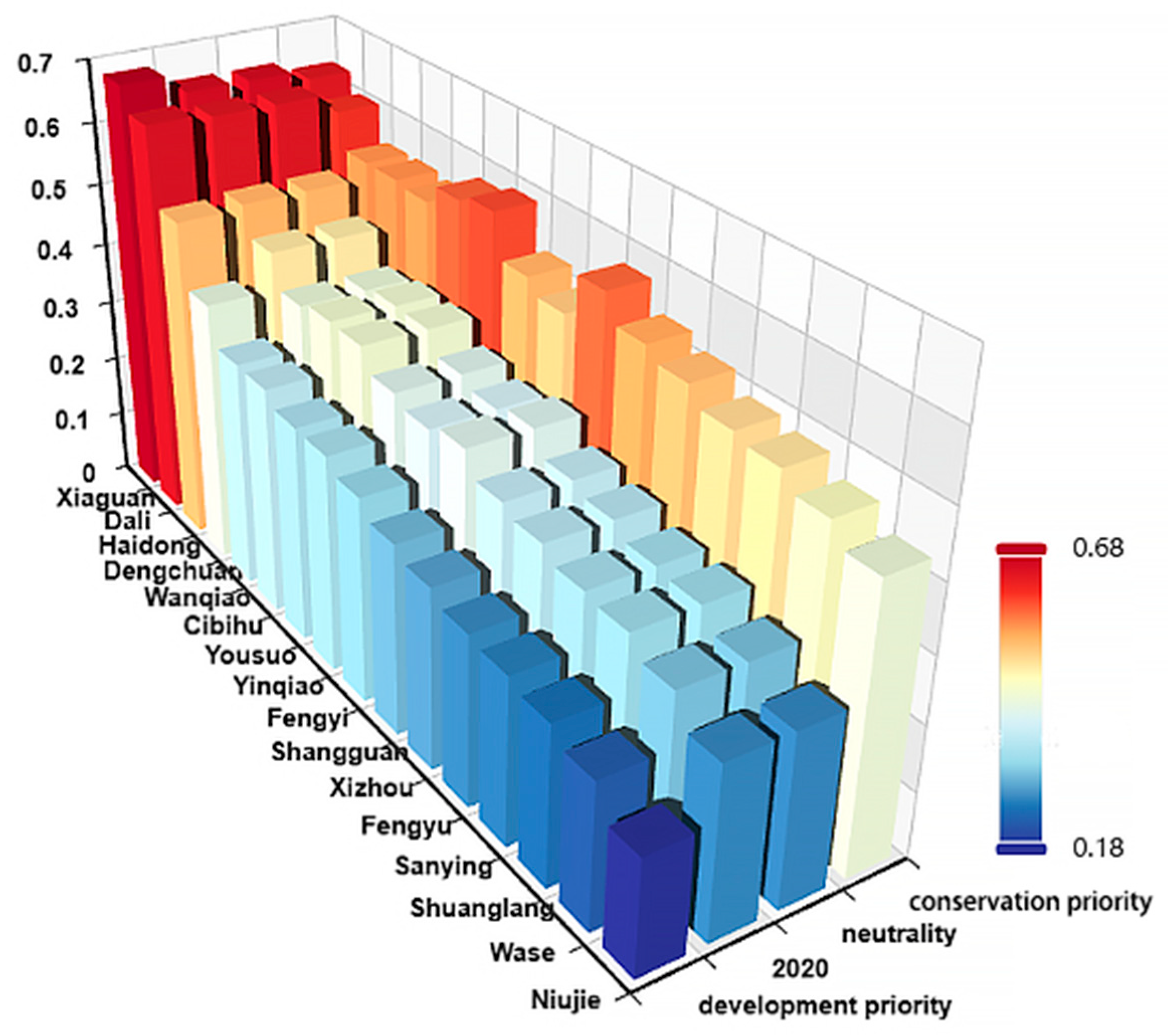 - Lu, D.; Tan, S.; Xia, J. Analysis on the ecological vulnerability of Dali city based on its landscape pattern and sensitivity to soil and water loss. Yunnan Geogr. Environ. Res. 2009, 21, 92–96. [Google Scholar] [CrossRef]