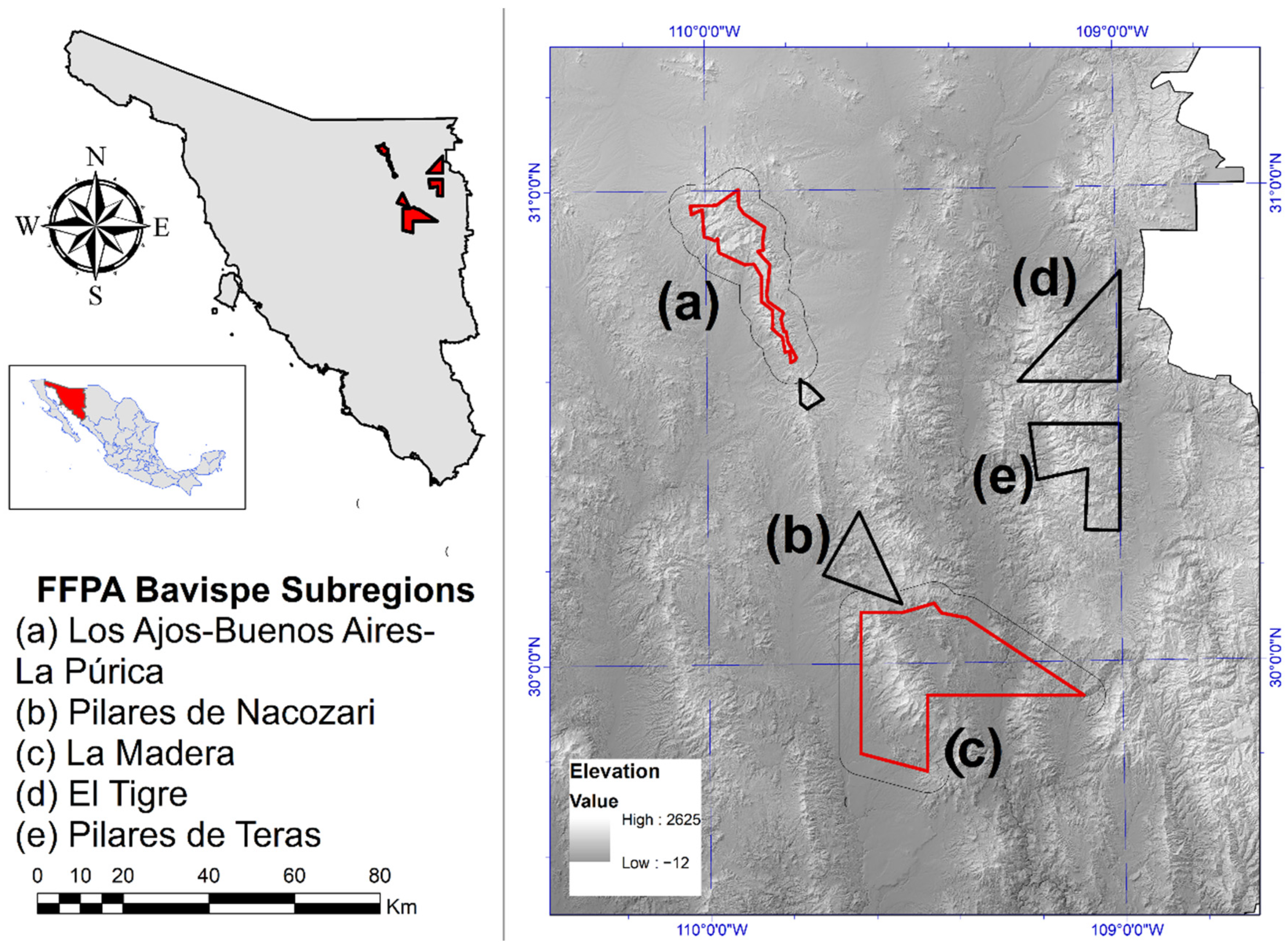 63]. Recent estimates indicate that approximately 3.5 million hectares (84.1%) of the historical grasslands in the Arizona and New Mexico portion of the Apache Highlands Ecoregion have already undergone varying degrees of woody encroachment [