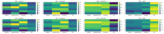 Across weekday and weekend regimes on the 200 m grid, MGWR–E2SFCA is the most balanced: it attains the strongest geometric overlap while keeping population-weighted errors low at the district scale (Figure 3 and Figure 4) (see Appendix A, Table A1). E2SFCA with VI yields compact, ring-weighted envelopes but misses longer-reach flows, especially weekends. The potential model captures broad attraction fields and inter-district corridors but tends to over-extend into ambient-only areas. MGWR–E2SFCA combines the advantages: it selectively extends along high-centrality spines and tightens around compact community parks, reducing commission without sacrificing coverage.