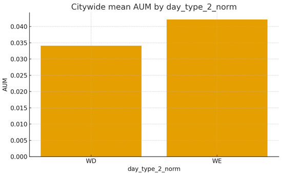 Day type variation in AUM (Figure 10) confirms a weekend tendency toward commission without behavioral calibration, underscoring the need for day-type-specific parameters.