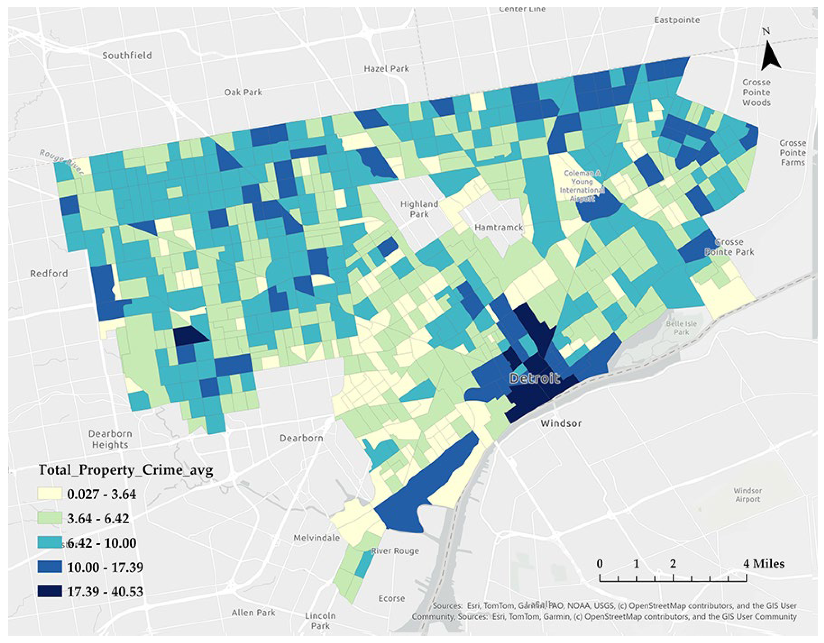 - Amoako, E.A. A spatial analysis of crime and neighborhood characteristics in Detroit census block groups. In Proceedings of the ICA, Virtual, 25–28 October 2021; Copernicus Publications: Göttingen, Germany, 2021; Volume 4, p. 5. [Google Scholar]