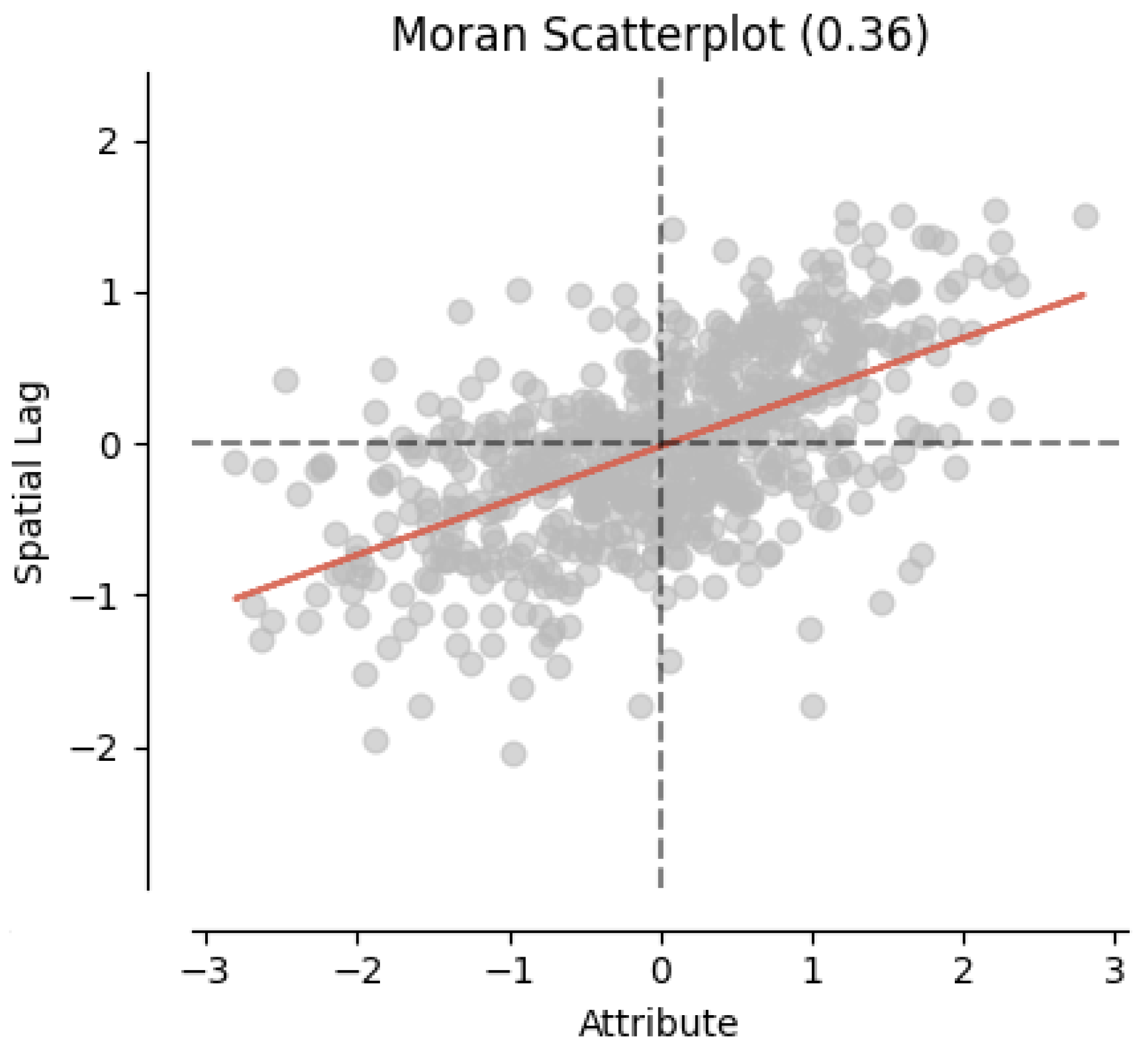 | Spatial lag (W_walkscore) | 0.7408 | 0.0323 | <0.001 ** |