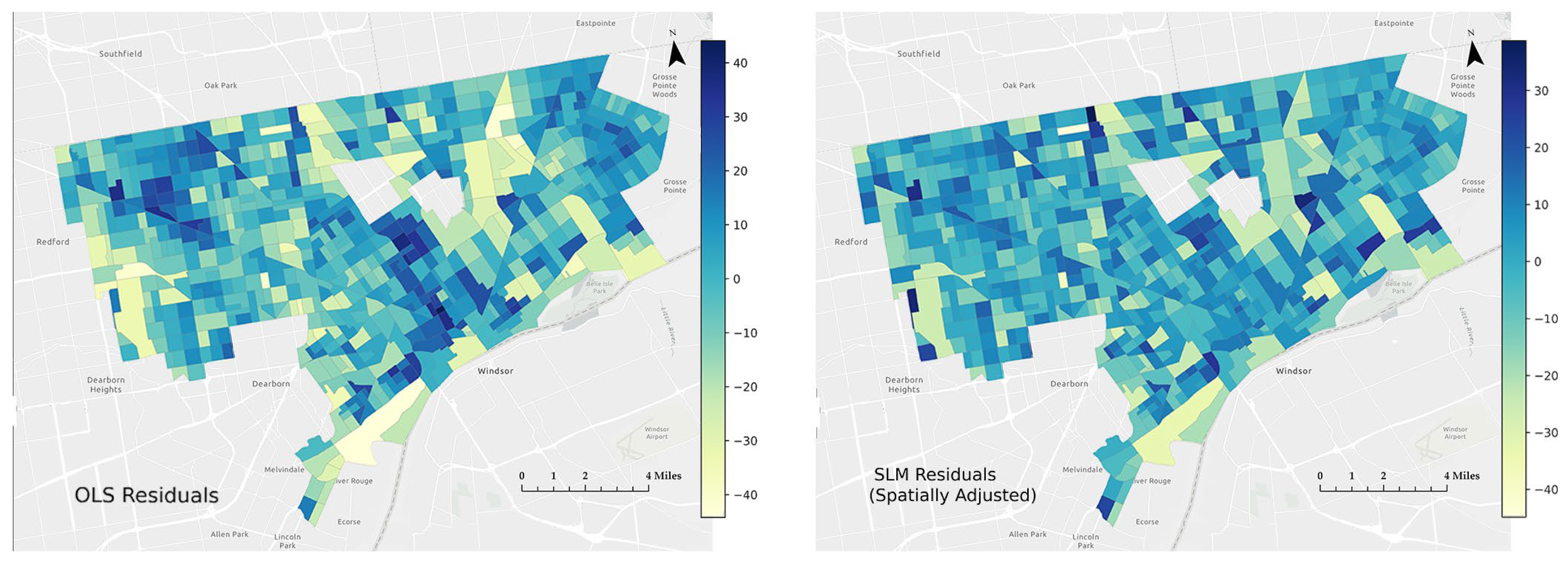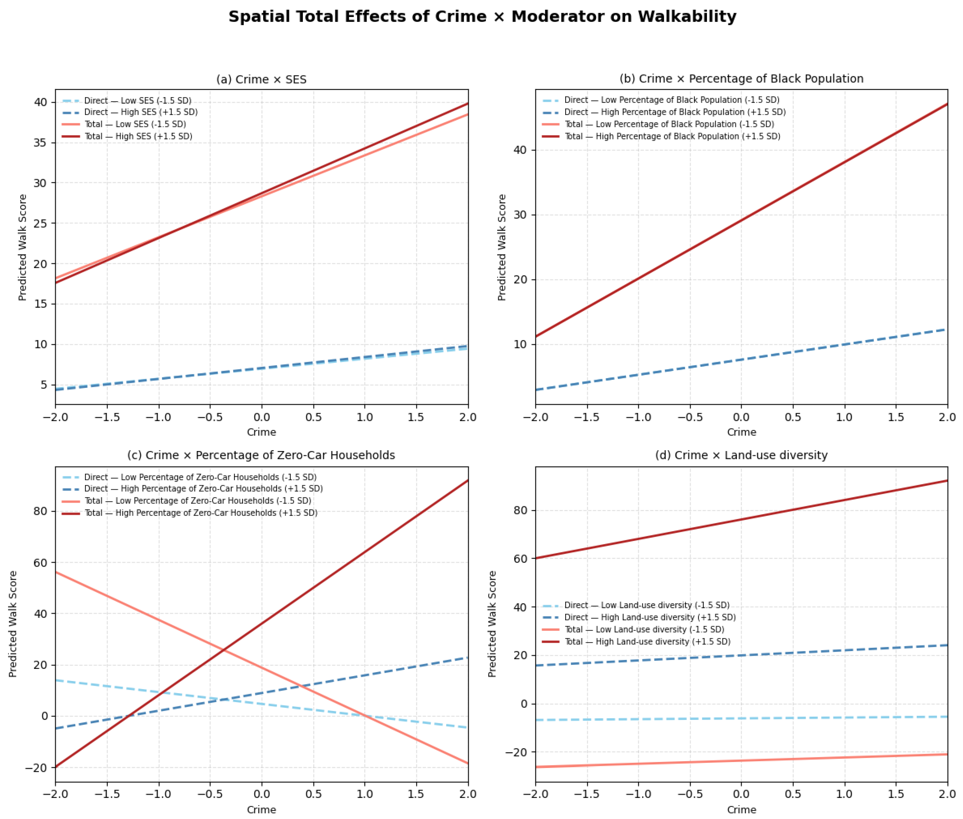 - How do demographic and environmental moderators condition the relationship between crime and walkability within Detroit’s historically segregated and unevenly developed neighborhoods?