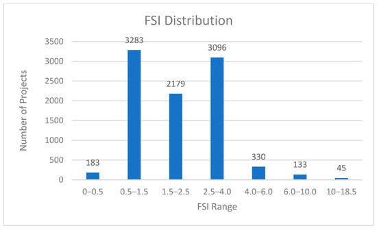 Despite regulatory flexibility, most projects opt for moderate intensities: the median FSI is 2.34, and 25% of projects operate below 1.4. The skewness (2.16) and kurtosis (11.24) confirm a sharp clustering around low-to-mid FSI values, punctuated by a small number of vertical outliers, as seen in Figure 2 below.