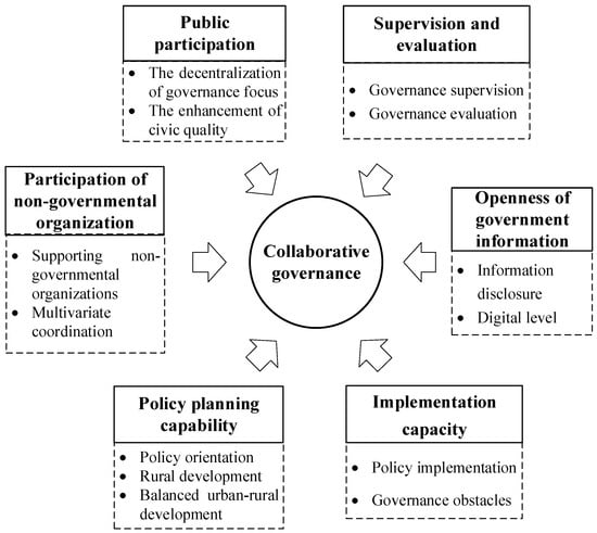 The urban–rural relationship is the most basic economic and social relationship [1,2]. The urban–rural relationships in China experienced dual structure period, balancing urban–rural development period, coordinated urban–rural development period, and urban–rural integrated development has becoming the latest description [3,4]. Urban–rural integrated development represents the most mature and ideal stage in the evolution of urban–rural relationships [5,6]. Urban–rural integrated development, as an important feature and main goal in the second half of the new urbanization, has become a significant measure to address the unbalanced development between urban and rural areas [7]. Meanwhile, urban–rural integrated development has been gradually become research hotspot in the field of public administration [8,9,10]. In the global processes of urbanization and modernization, the contrast between rural decline and urban prosperity is evident—a phenomenon notably prevalent in developing countries, where rural decline has become a widespread reality [11]. From a holistic perspective, cities and villages form a system in which they hold equal status, differing only in the functions they undertake [12]. For a long time, dual urban–rural system in China, characterized by urban-biased development strategies, citizen-oriented distribution systems, and industry-oriented industrial structures, has led to obvious structural contradictions in urban–rural development [13]. These contradictions are embodied in the imbalanced urban–rural development, inadequate rural development, widening urban–rural disparities, and gradual decline of rural areas. These issues have become the concentrated manifestation of the contradiction between the ever-growing needs of the people for a better life and inadequate development, severely constraining the high-quality and sustainable development of both urban and rural areas in China. In the rapid process of urbanization, factors such as labor, capital, and land have formed a configuration pattern flowing from rural areas to cities, leading to the rapid development of cities [14,15]. Meanwhile, the output and spillover effects of cities on rural areas remain relatively limited. This predominantly unidirectional “rural-to-urban” flow pattern constitutes a primary driver of rural underdevelopment in China [16]. Empirical studies have indicated that prior to 2010, rural areas were in a state of passive development, largely relying on the driving force of cities to propel rural development. However, since 2010, the advancement of agricultural modernization and rural development has fostered greater dynamism in factor mobility between urban and rural areas, marking the beginning of an accelerated phase of urban–rural interaction [17,18]. Cities and villages form a community with a shared future, mutually promoting and supporting each other, in order to achieve a harmonious, enduring, and virtuous cycle of urban–rural co-prosperity and symbiosis [19]. Consequently, reshaping the urban–rural relationships and integrating urban–rural development constitute the fundamental approach and logic underpinning the implementation of Chinese rural revitalization strategy [20,21]. Against the backdrop of achieving high-quality development and advancing sustainable urban–rural development, integrating urban–rural development has demonstrated its significance and necessity in ameliorating the urban–rural relationship and alleviating the issues of inadequate and unbalanced regional development [22,23]. In China, the concept of “national governance” was formally introduced for the first time at the Third Plenary Session of the 18th Central Committee of the Communist Party of China, which called for a shift from “traditional social management” to “modern social governance”, thereby advancing the modernization of the national governance system and governance capacity. This governance philosophy is conducive to addressing the issues of “fragmentation” and “atomization” in the process of government administration, thereby avoiding the “Tacitus Trap”, and achieving an efficient situation characterized by joint discussion, consensus, collaboration, sharing, and co-governance [24]. After witnessing instances of “governmental failure” and “market failure”, governance theory has gradually emerged as a prominent topic in the field of public administration. Under the influence of the New Public Management Movement, government functions have gradually shifted from “controller” to “steersman”. Government public administration has evolved from being a “governance-oriented administration” to a “service-oriented administration”, progressively abandoning the omnipotent model of government that encompasses all responsibilities. Instead, it encourages and incorporates the participation of diverse entities such as non-governmental organizations, businesses, and citizens in social governance [25]. Collaborative governance refers to an institutional arrangement in which governmental and non-governmental actors participate on an equal basis, guided by shared objectives, to jointly implement public administrative affairs. It has proven to be an effective policy tool in the field of public management. Effective governance, in this sense, involves the collaborative and shared administration of diverse stakeholders centered around common interests [26,27,28]. Ye & Liu recognizes that urban–rural collaborative governance has emerged as a significant issue of paramount importance for both current and future development [29]. Despite urban–rural integrated development being elevated to a national strategy and actively explored by governments at all levels, its anticipated outcomes remain elusive due to multiple challenges—including constrained flows of factors between urban and rural areas and unequal provision of basic public se