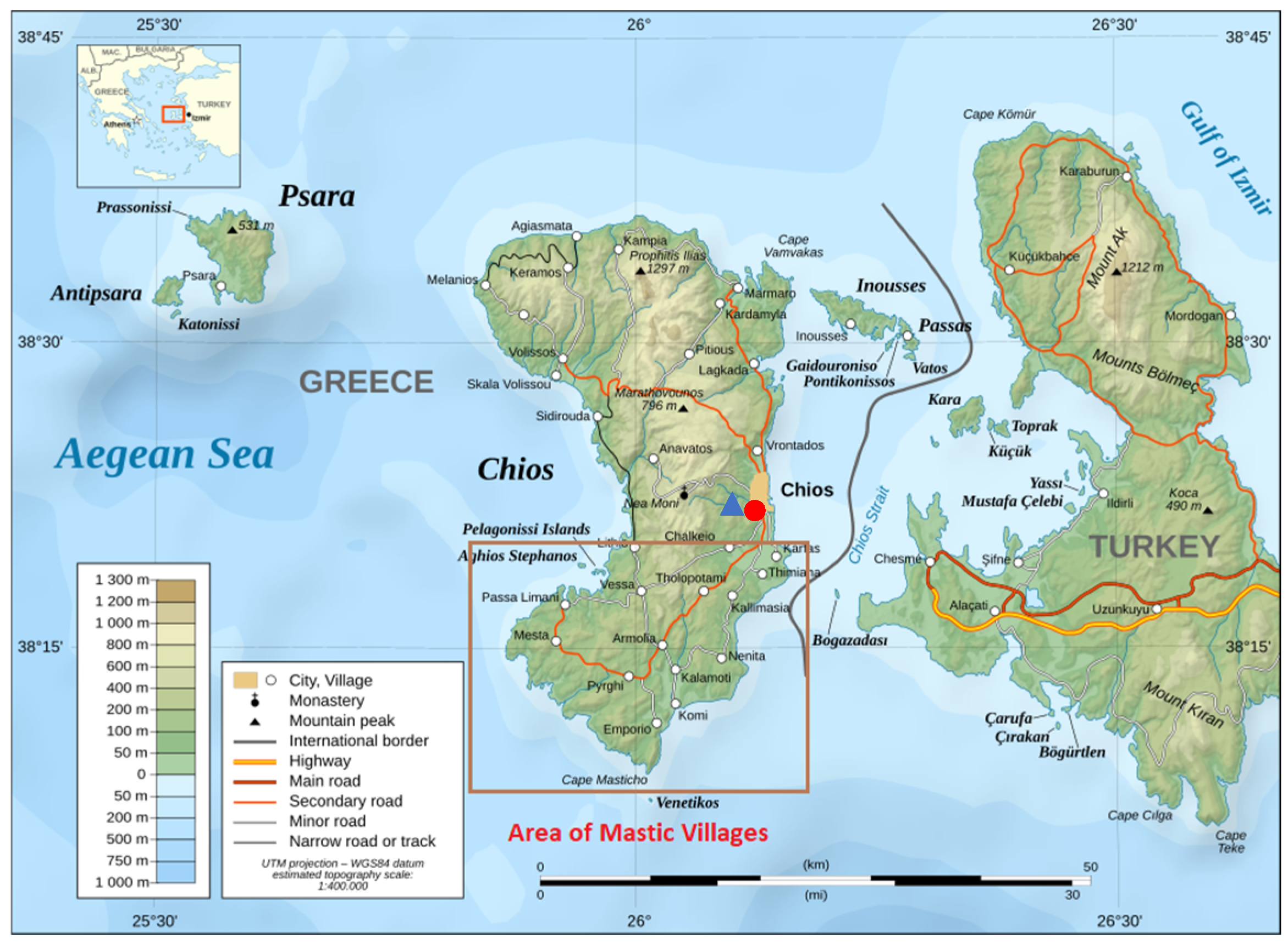 - Pernot, H. En Pays Turc. L’île de Chio; Maisonneuve: Paris, France, 1903. [Google Scholar]