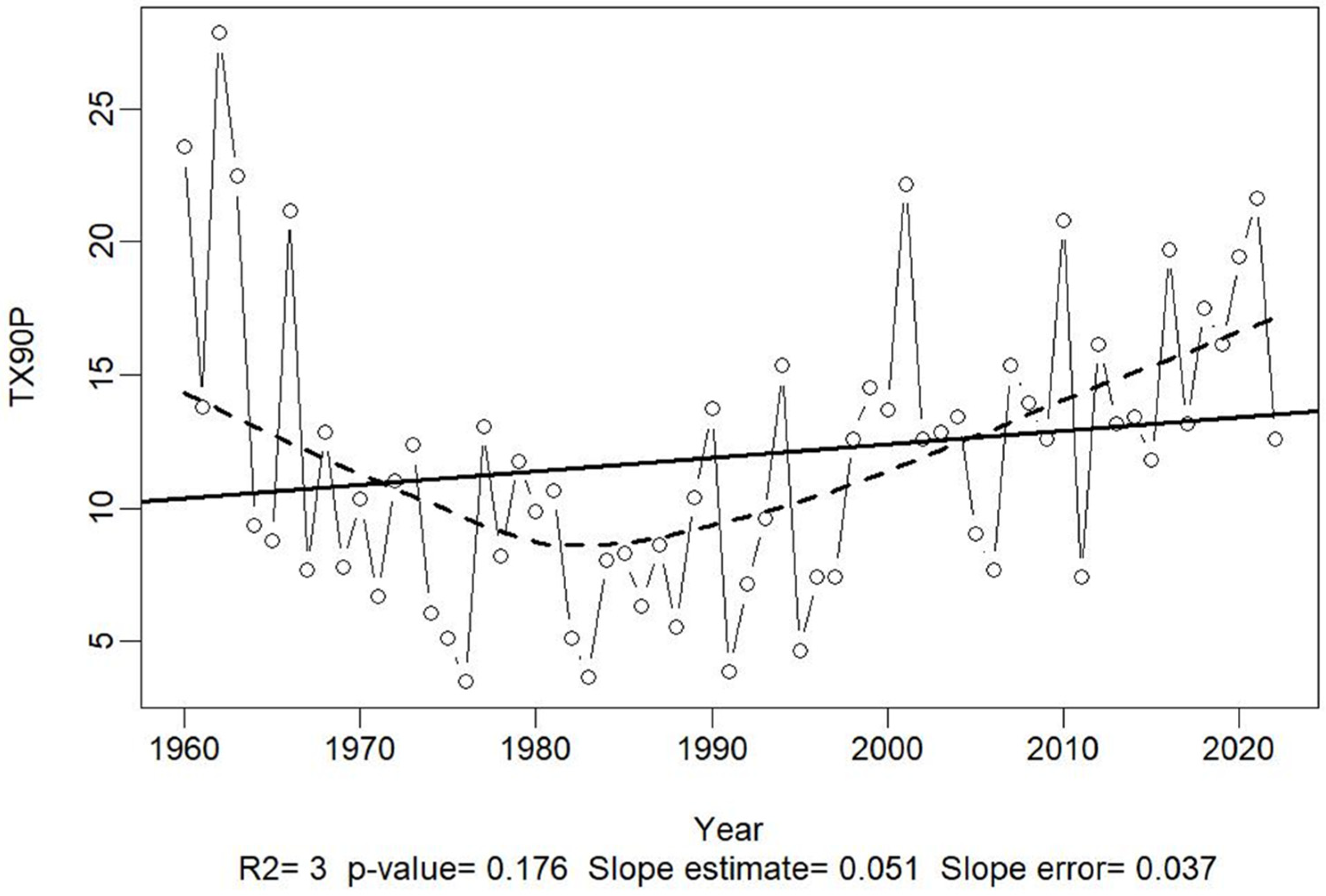 | TX90p | Warm Days—Days with Tmax > 90th percentile |