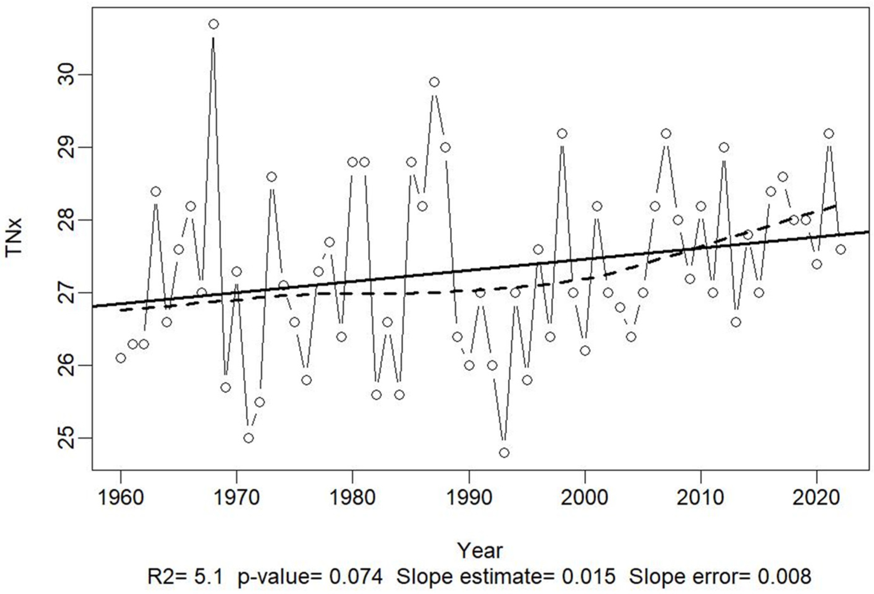 | TNx | Maximum of Tmin—Highest Tmin during the period |
