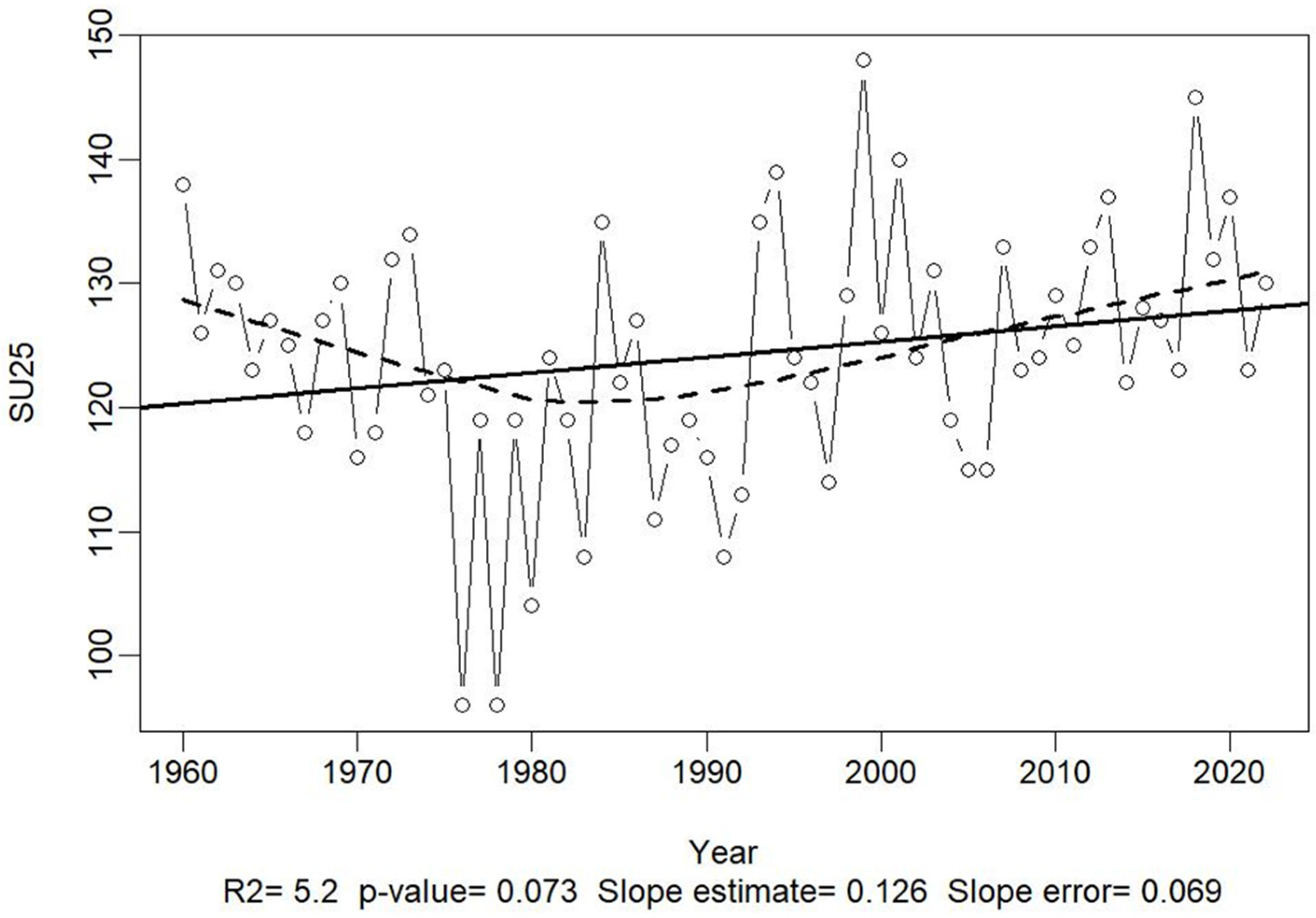 | SU25 | Summer Days—Days with Tmax ≥ 25 °C |
