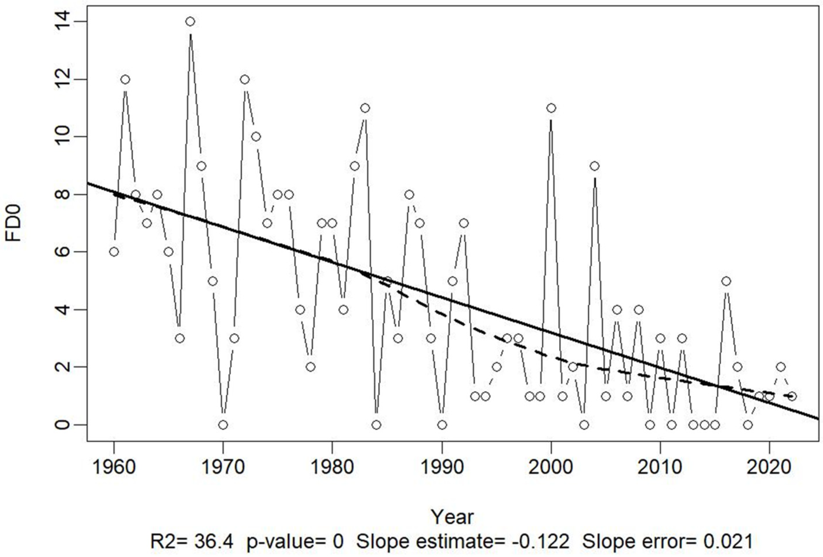 - SU25—Days with Tmax ≥ 25 °C and FD0- Days with Tmin < 0 °C