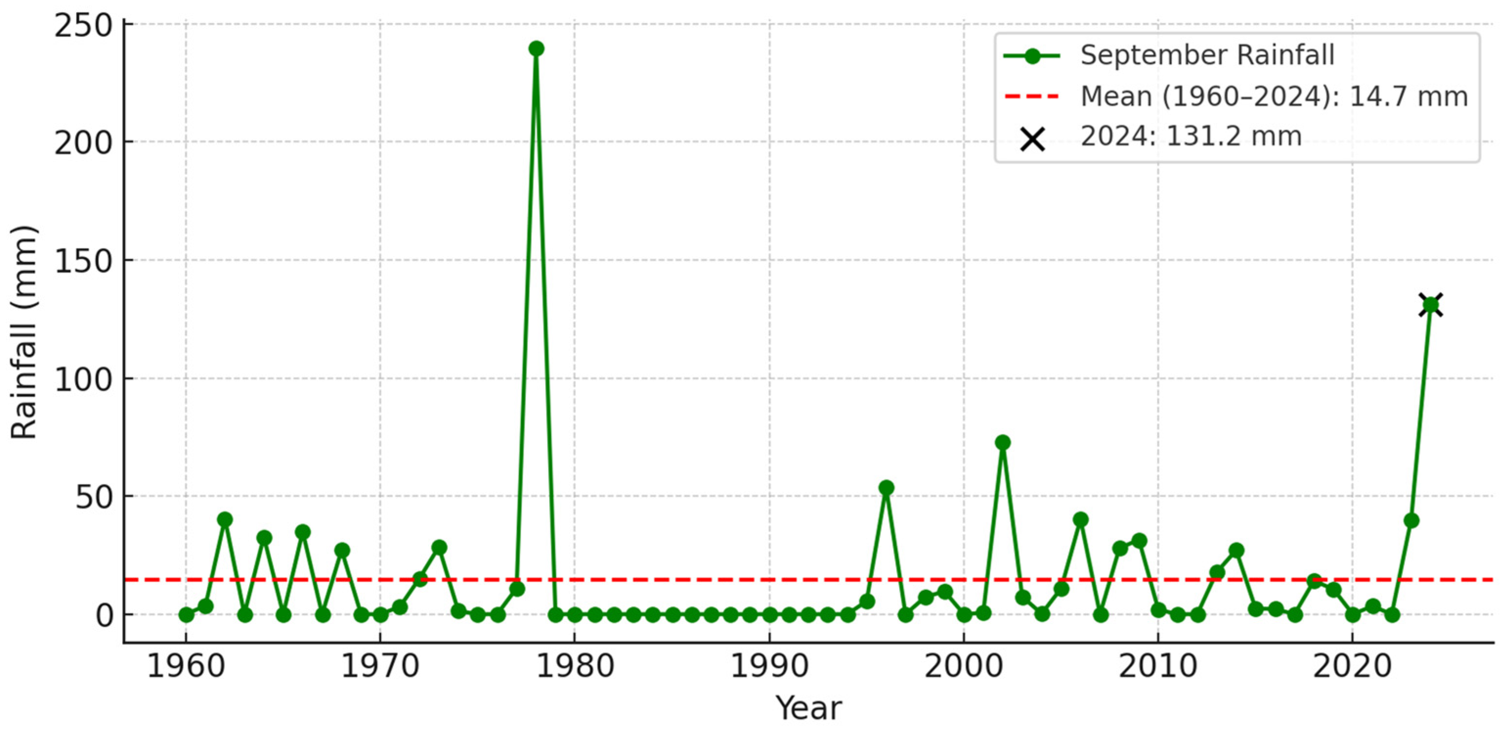 4.3. Historical Context—September Rainfall (1960–2024)