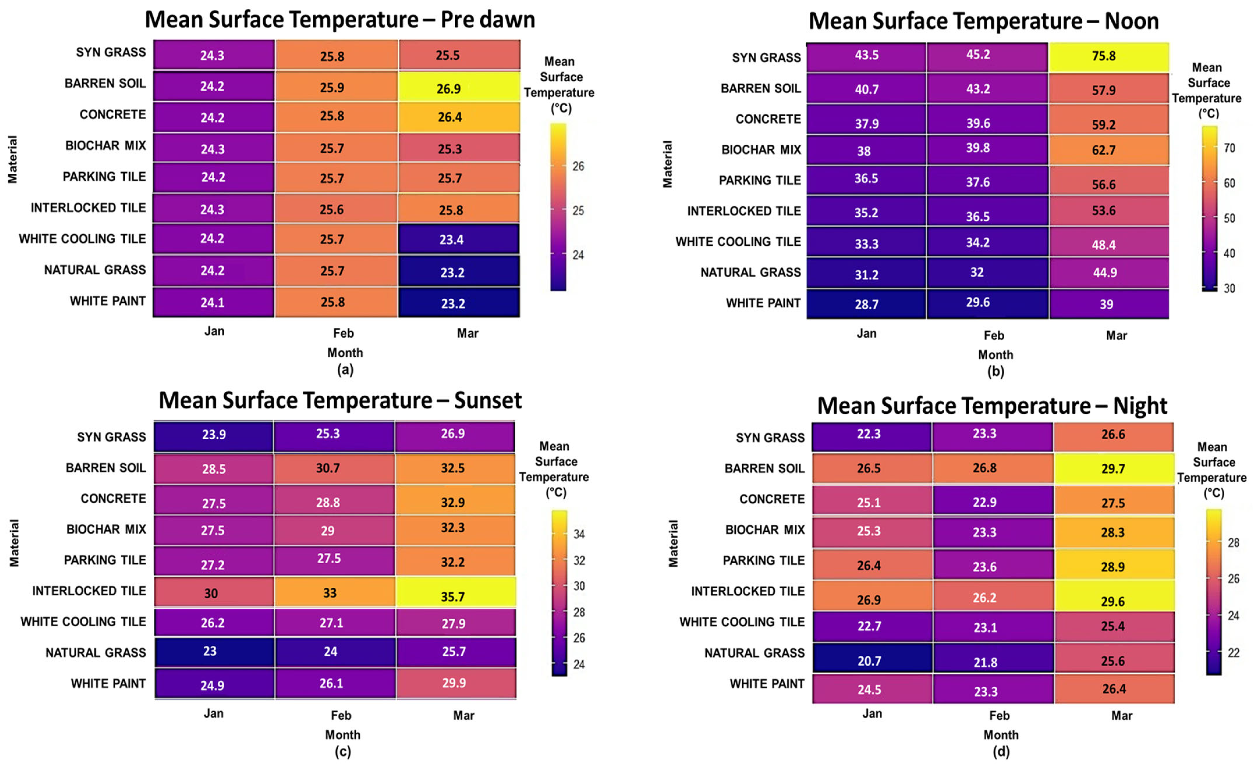 4.3. Discussion—Seasonal and Diurnal Variations in Surface Temperature Across Urban Materials