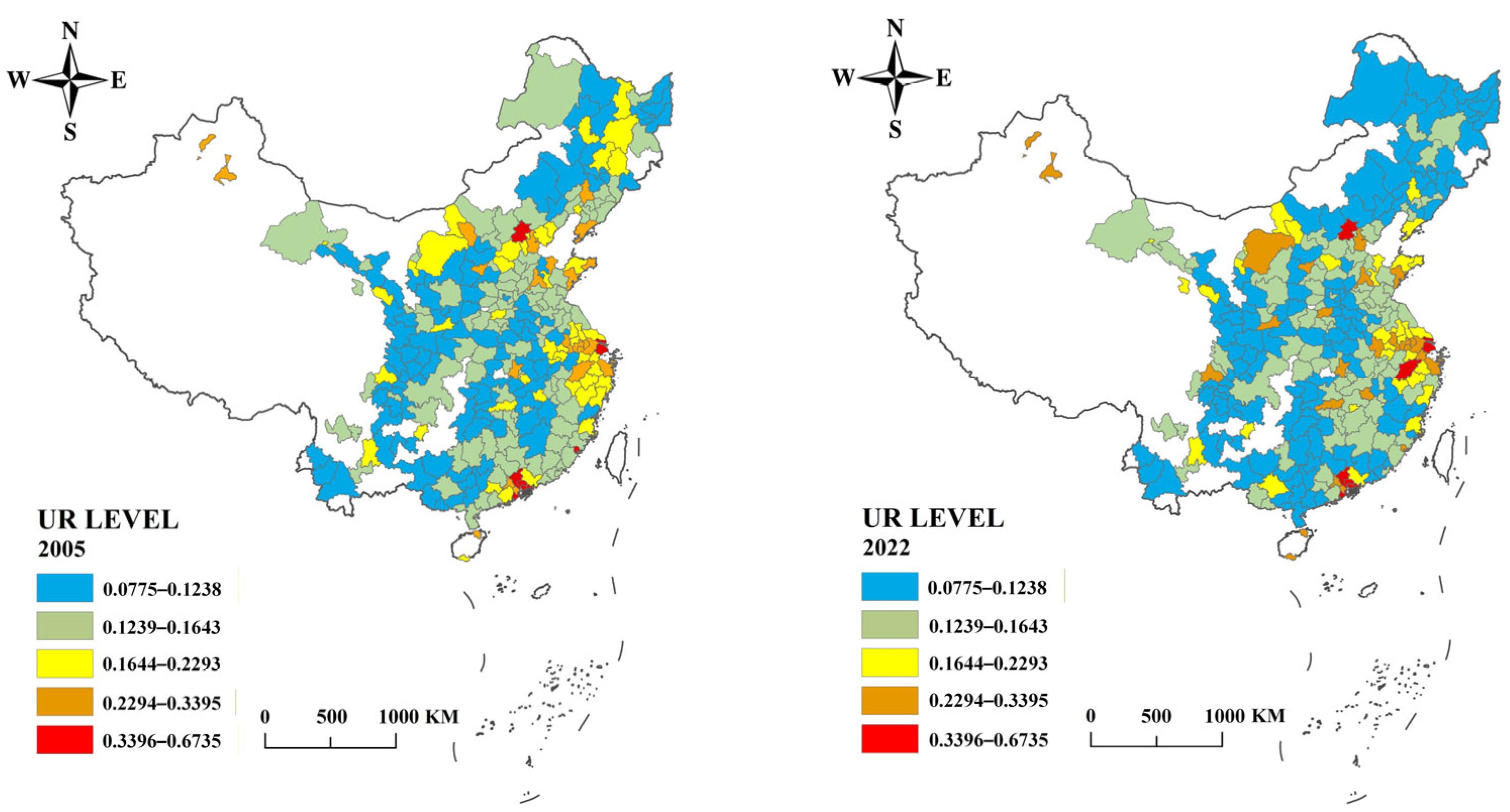 3.2. Spatial Differences and Source Structure Decomposition of UR