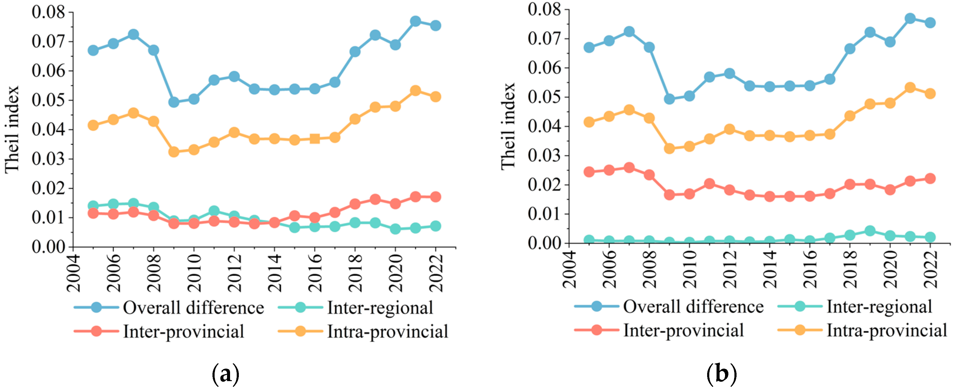 - Akita, T. Decomposing regional income inequality in China and Indonesia using two-stage nested Theil decomposition method. Ann. Reg. Sci. 2003, 37, 55–77. [Google Scholar] [CrossRef]