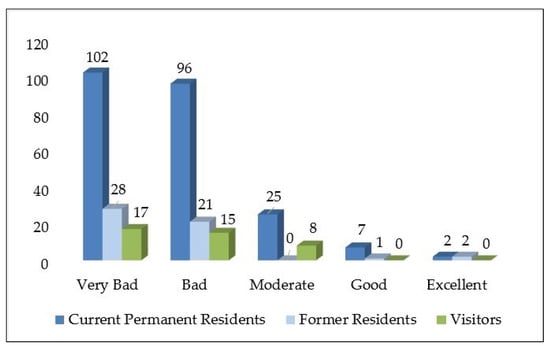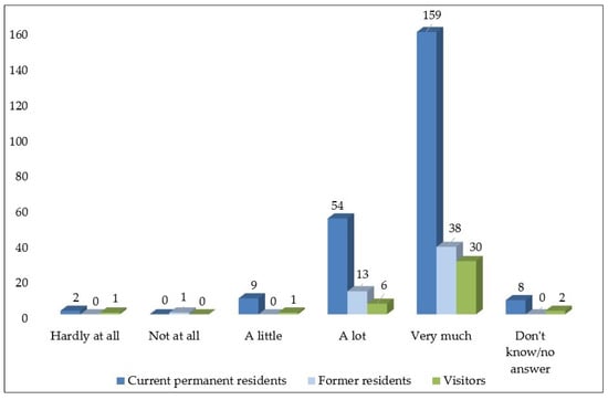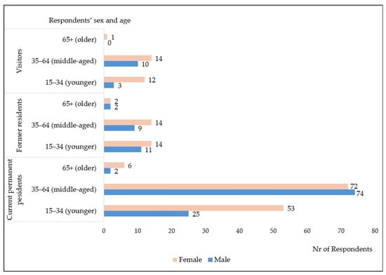 - Comparative analysis: Cross-tabulations were performed to compare responses among the main subgroups (e.g., residents vs. visitors; respondents related or unrelated to tourism; sex and age groups).