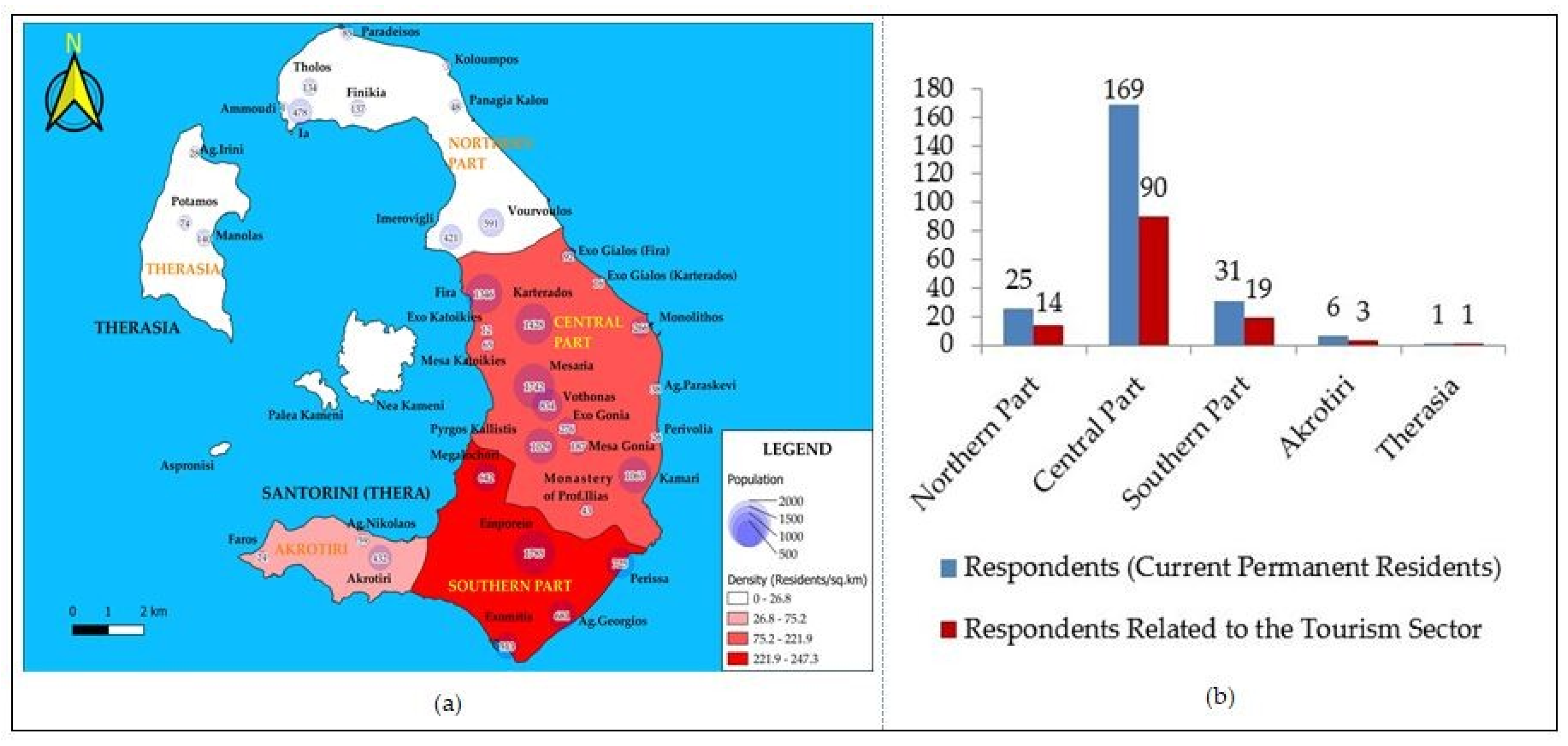 | Central part | Messaria, Thira, Karterados, Pyrgos, Vothonas, Exo Gonia, Episkopi Gonias | 8472 | 169/(72.8) | 90/(70.9) |