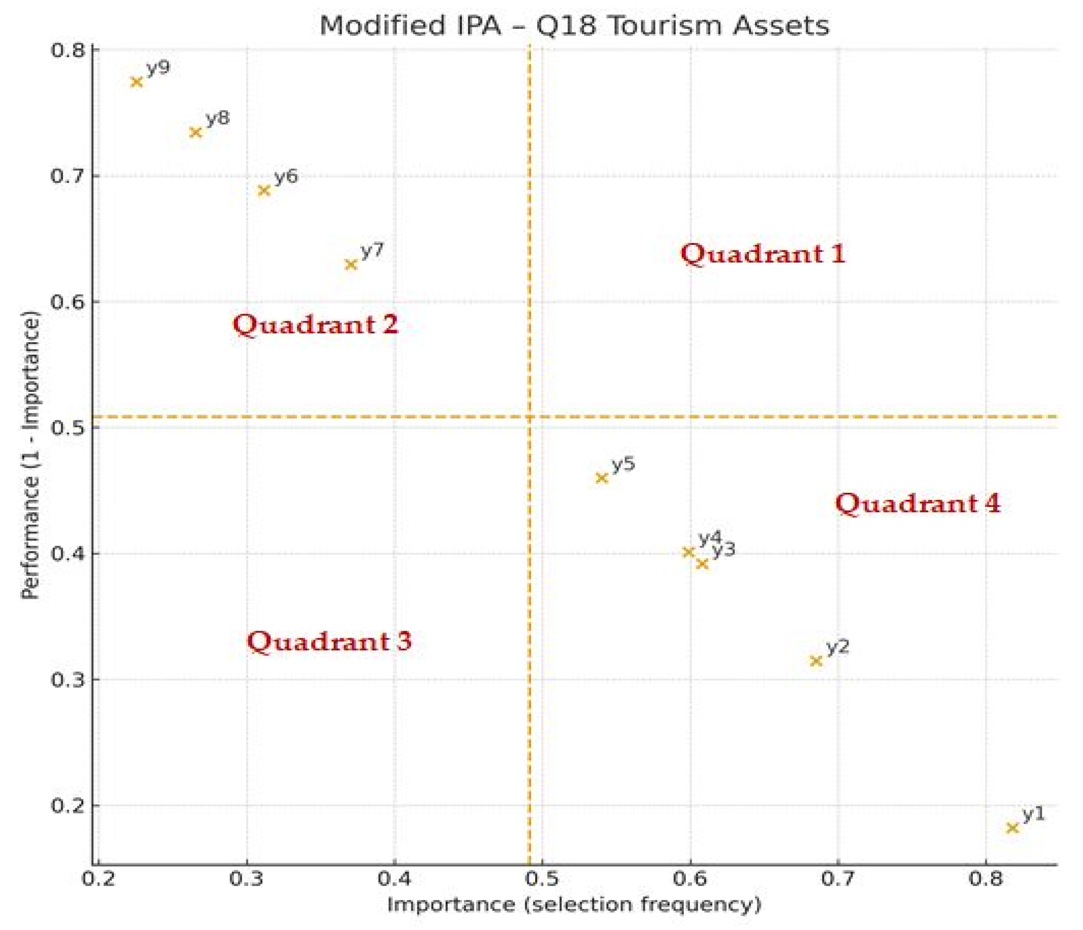 - Lai, I.K.W.; Hitchcock, M.; Yang, T. Importance–performance analysis in tourism: A framework for researchers. Tour. Manag. 2015, 48, 242–267. [Google Scholar] [CrossRef]