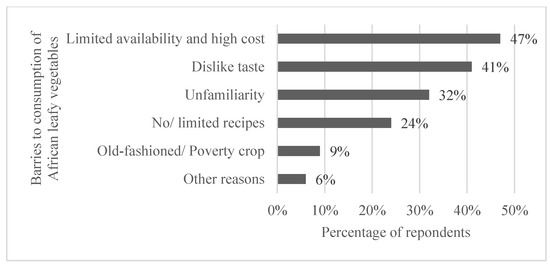 However, supply-side barriers and preferences persist. In South Africa’s Northwest province, limited crop availability was a key barrier to vegetable consumption [50]. A trend rooted in the post-colonial displacement of native crops has led to exotic vegetables being preferred over AVs, contributing to the neglect of the latter [51].