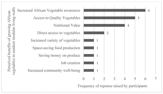 Opportunities for cultivating African leafy vegetables in outdoor modular living walls that were frequently highlighted by the Melusi Early Childhood Development and Youth Centre staff during their focus group discussions.