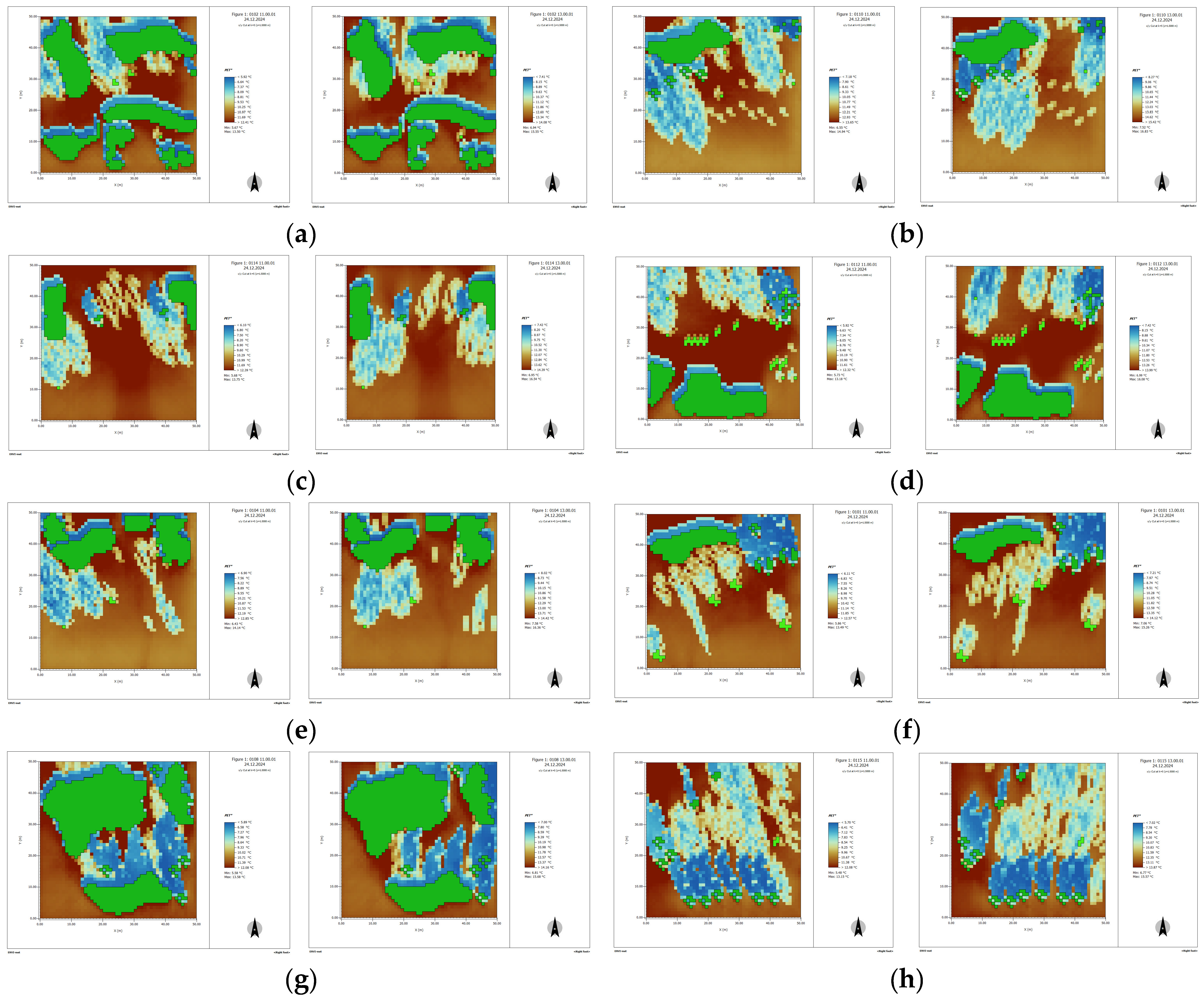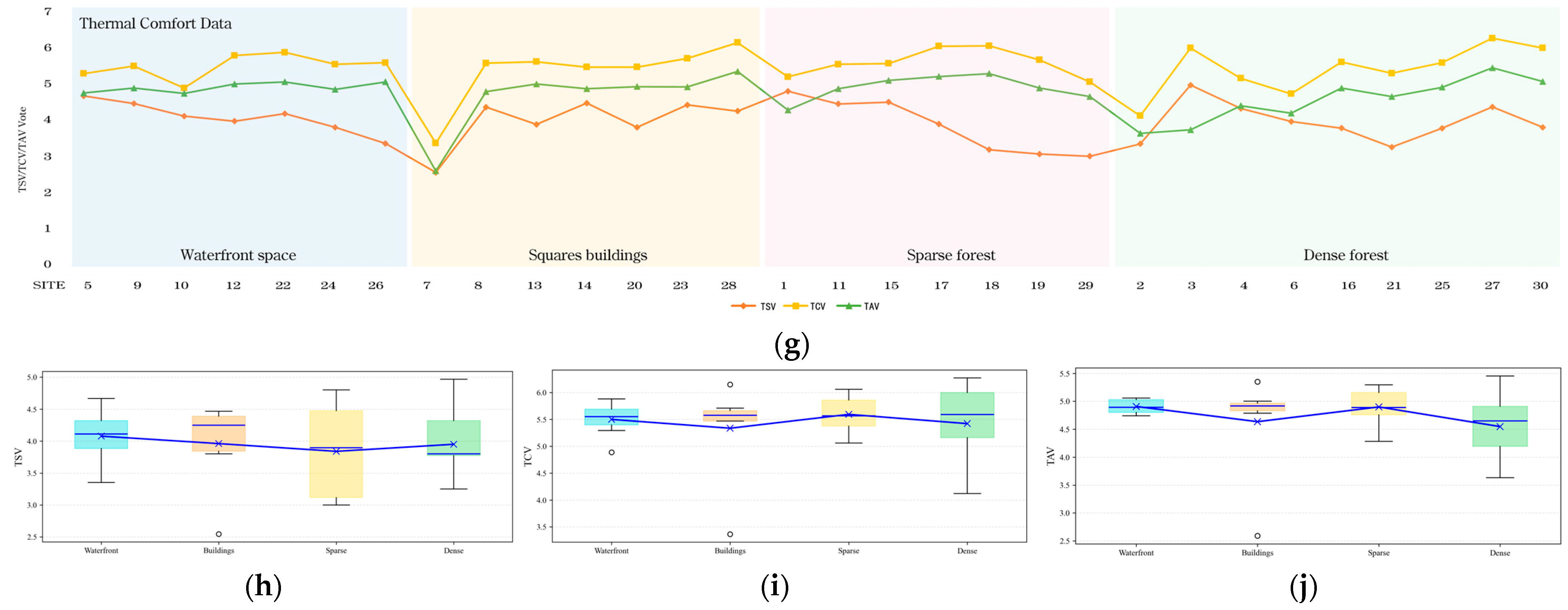 3.4. Outdoor Thermal Comfort Investigation in Different Spaces