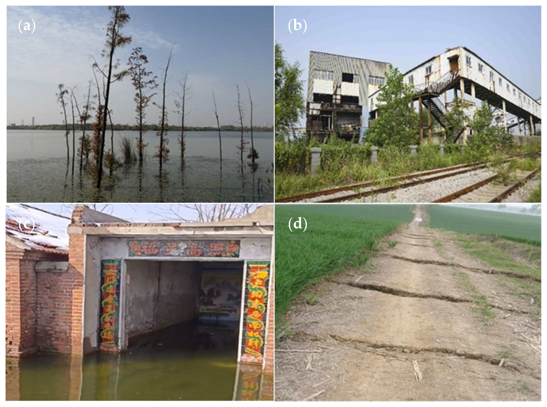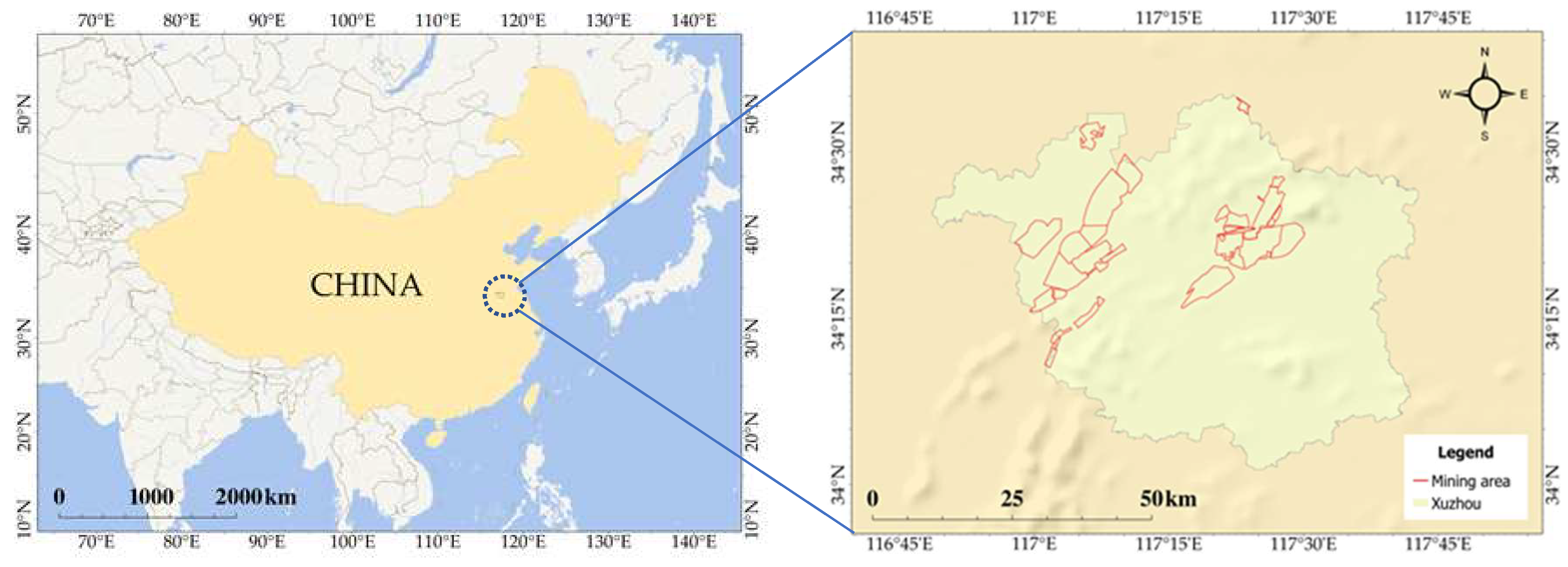 Since the 1990s, Xuzhou’s coal resources have been gradually depleted, placing significant pressure on industrial transformation. After 2010, all the coal mines within the urban area ceased production and were subsequently closed, leaving behind large tracts of idle and abandoned industrial–mining land. Prolonged, high-intensity extraction has cumulatively caused 20,000 ha of coal-mining subsidence (about 3% of the municipal area), affecting 118 villages and forcing the relocation of more than 100,000 residents. The land subsidence and ecological degradation in this area have become increasingly severe, thereby constraining the sustainable development of the urban space (